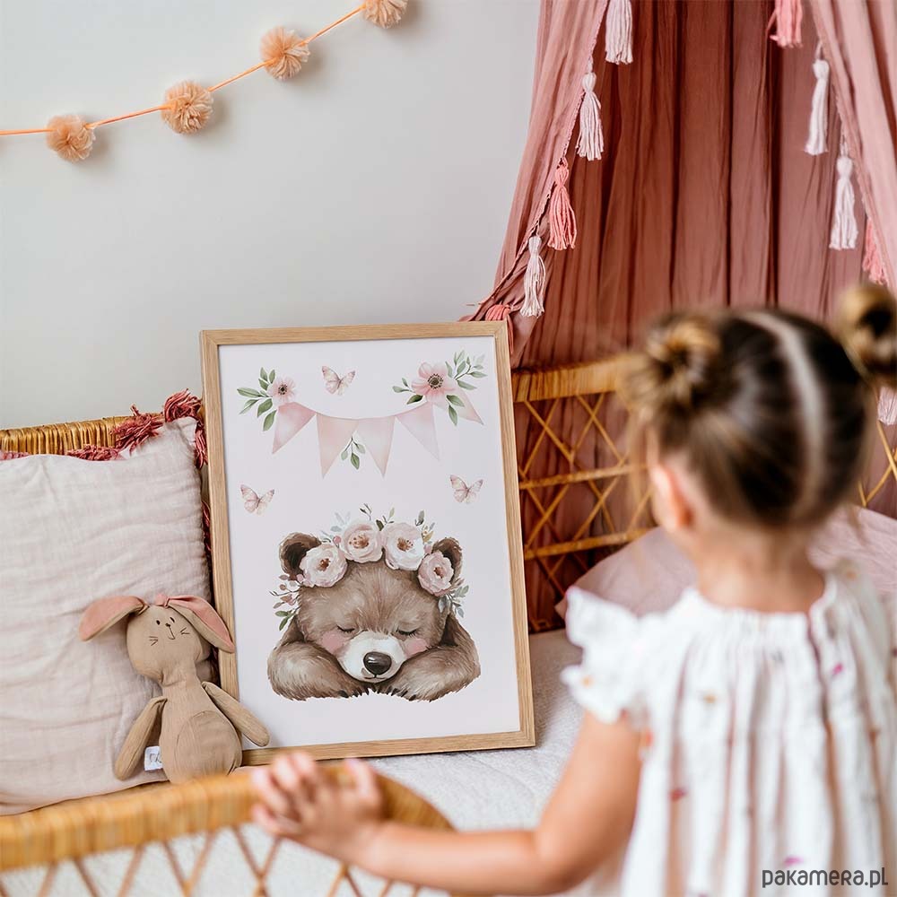 Delikatna, ciepła i pełna uroku kolekcja plakatów w odcieniach pudrowego różu, stworzona z myślą o przytulnych pokojach najmłodszych. Subtelna kolorystyka w połączeniu z uroczymi leśnymi zwierzątkami tworzy harmonijną dekorację, która wprowadza do wnętrza spokój, miękkość i bajkowy klimat.