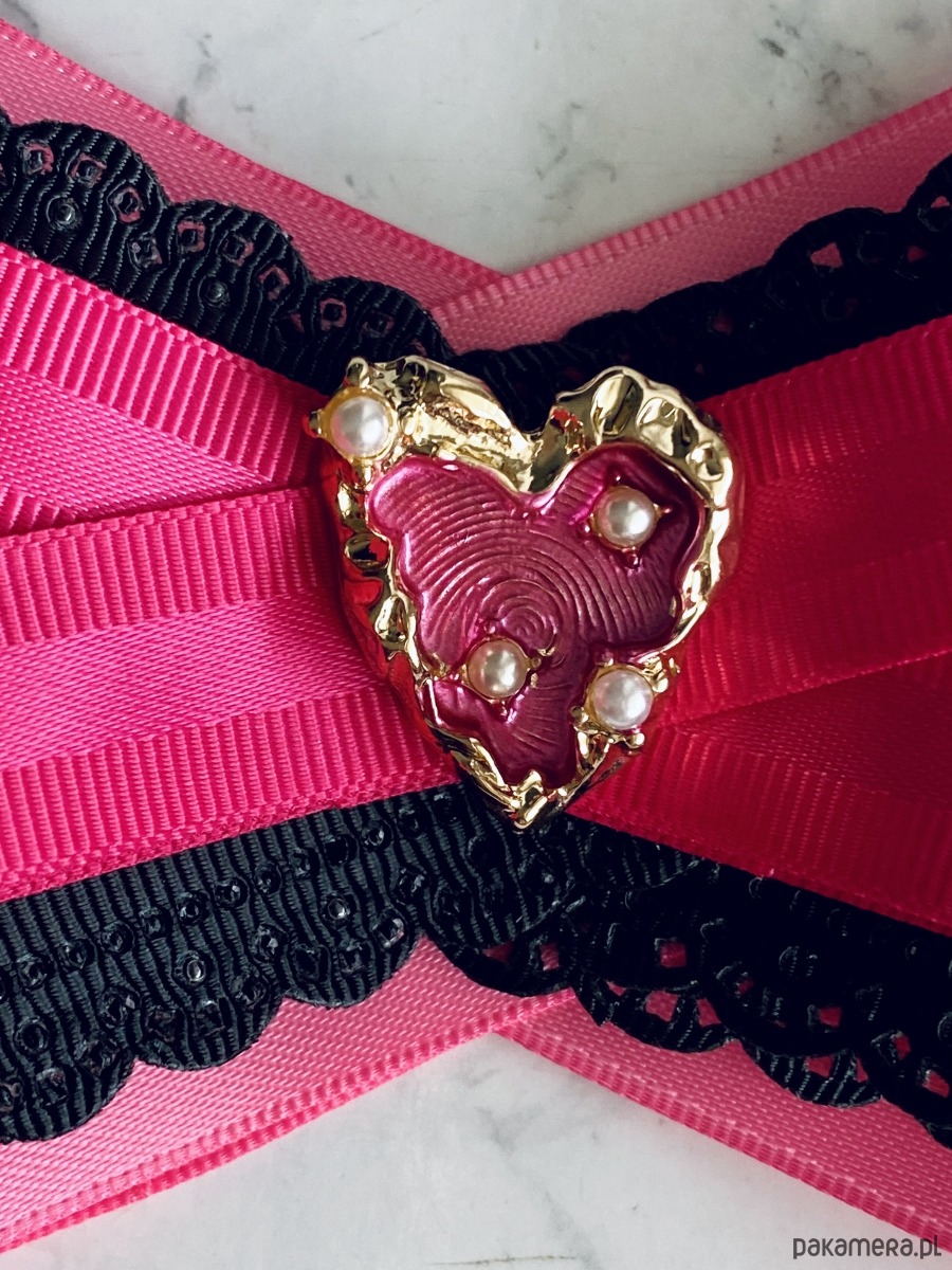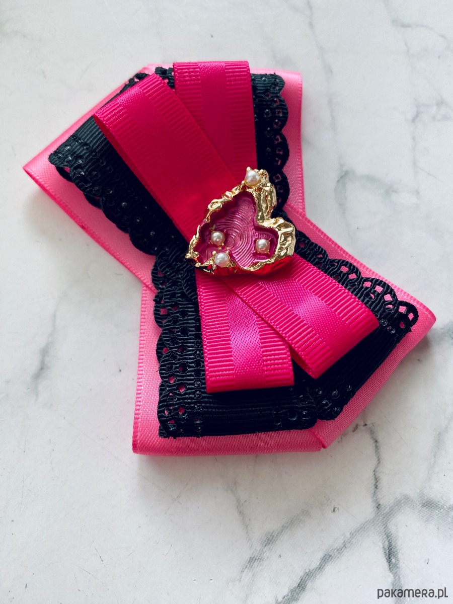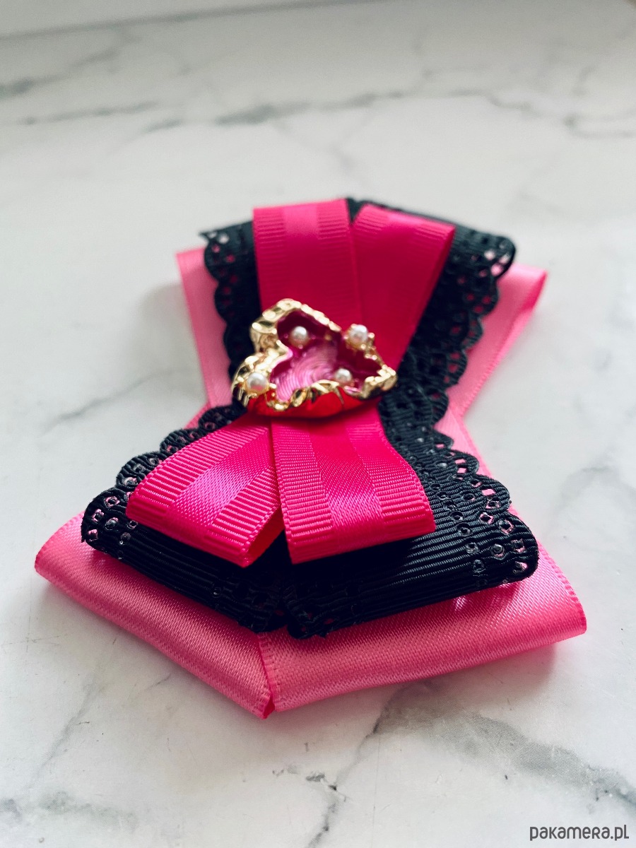 Broszka wykonana z wysokiej jakości taśm i dodatków.