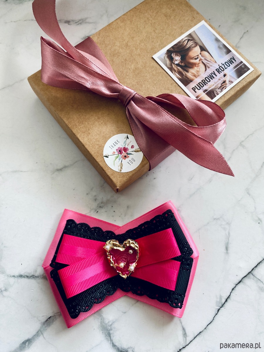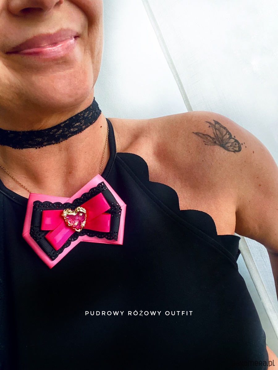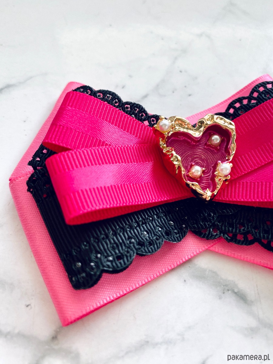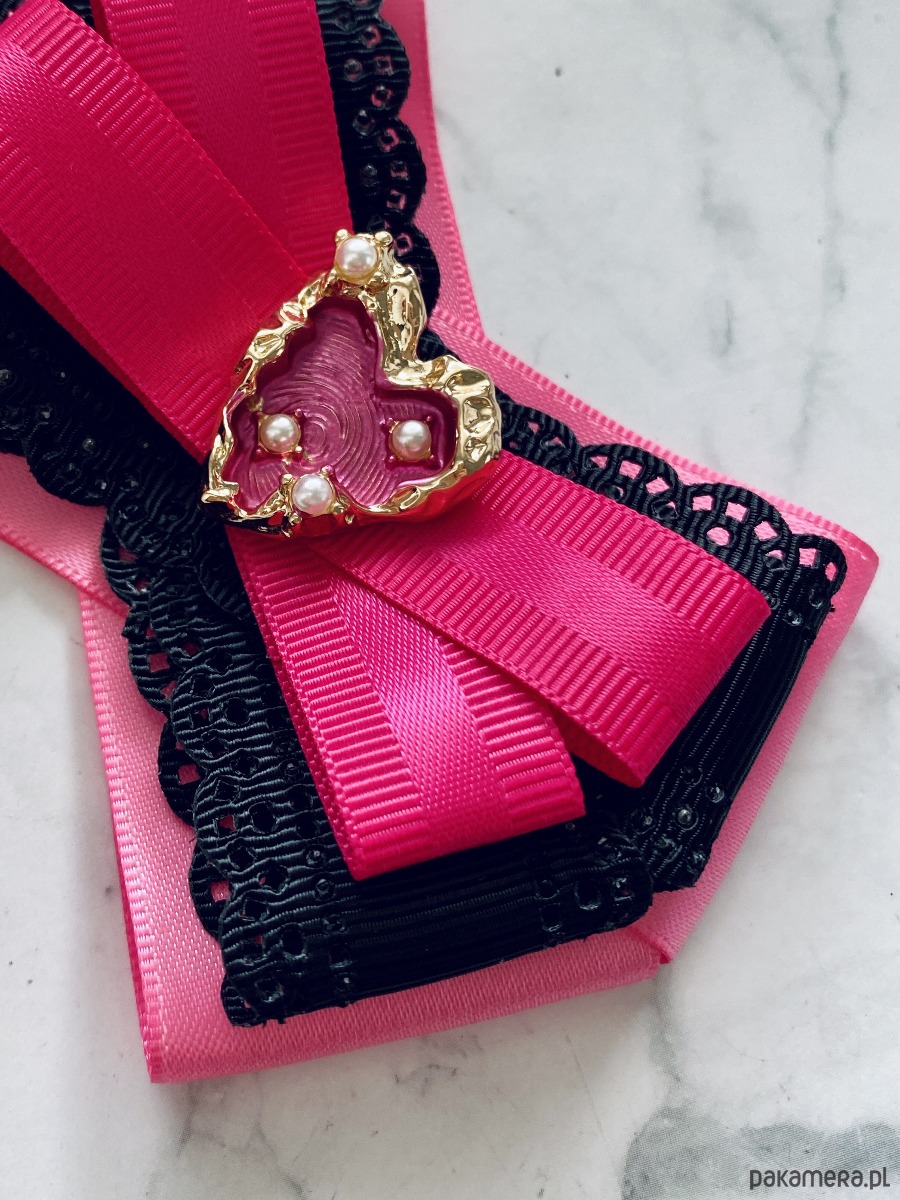 Broszka wykonana z wysokiej jakości taśm i dodatków.