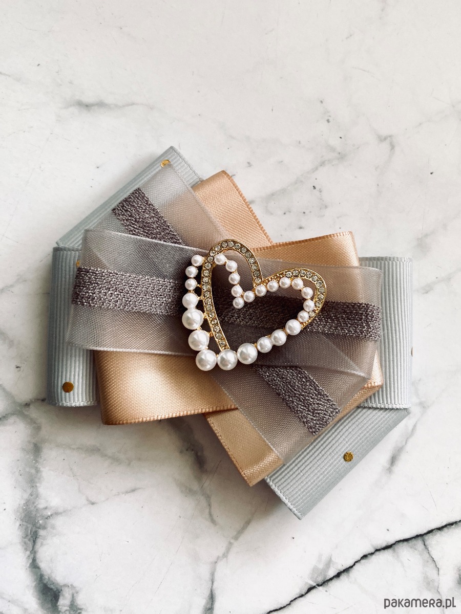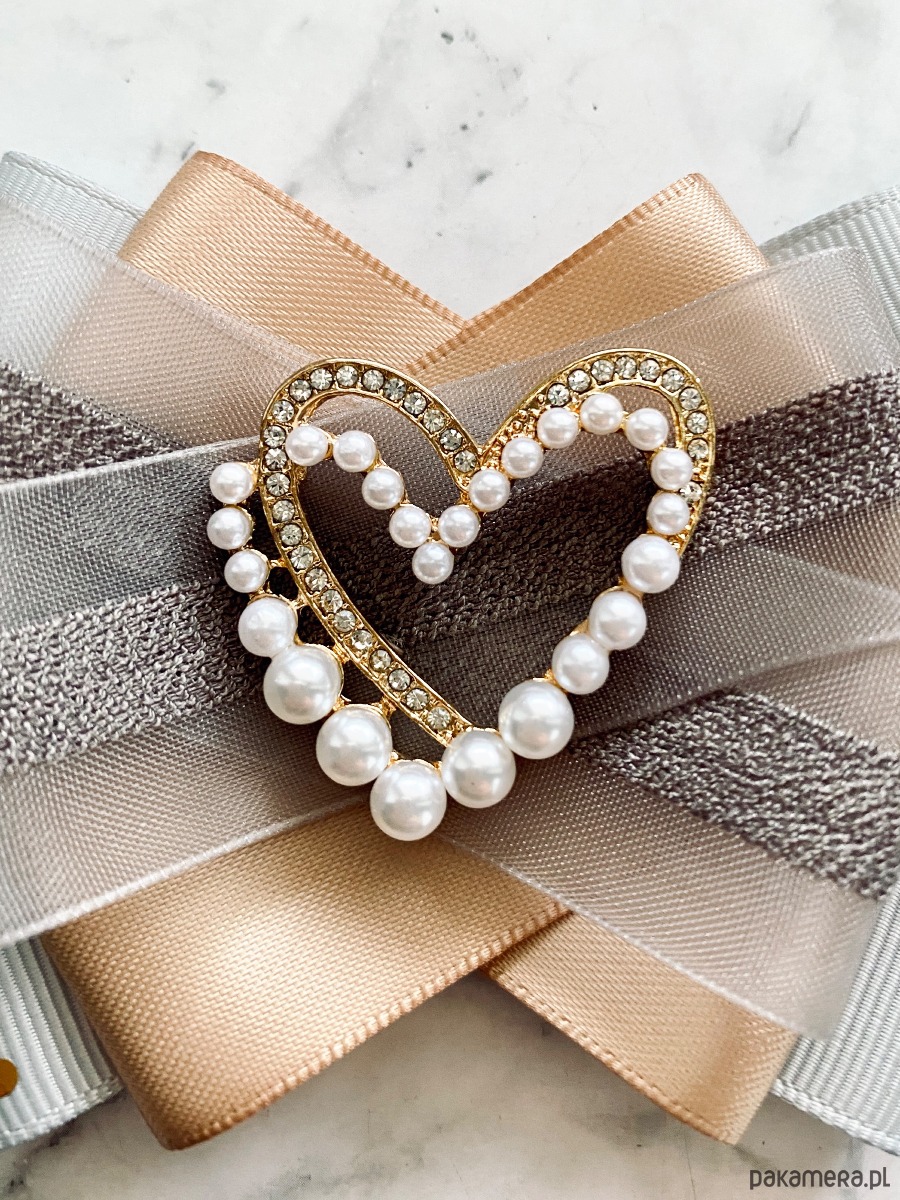 Na środku cudne podwójne Serce, jedno w kolorze złotym drugie wykonane z perełek o różnej wielkosci.