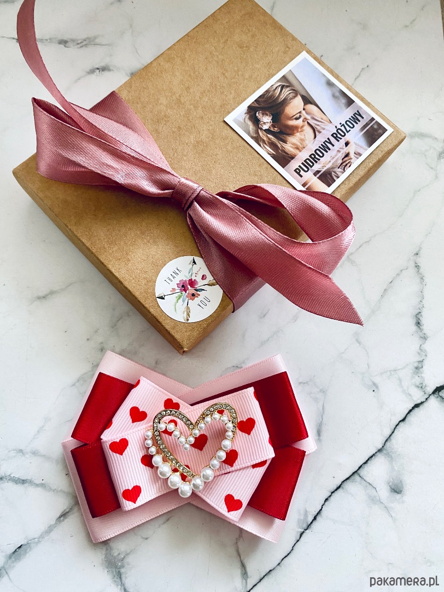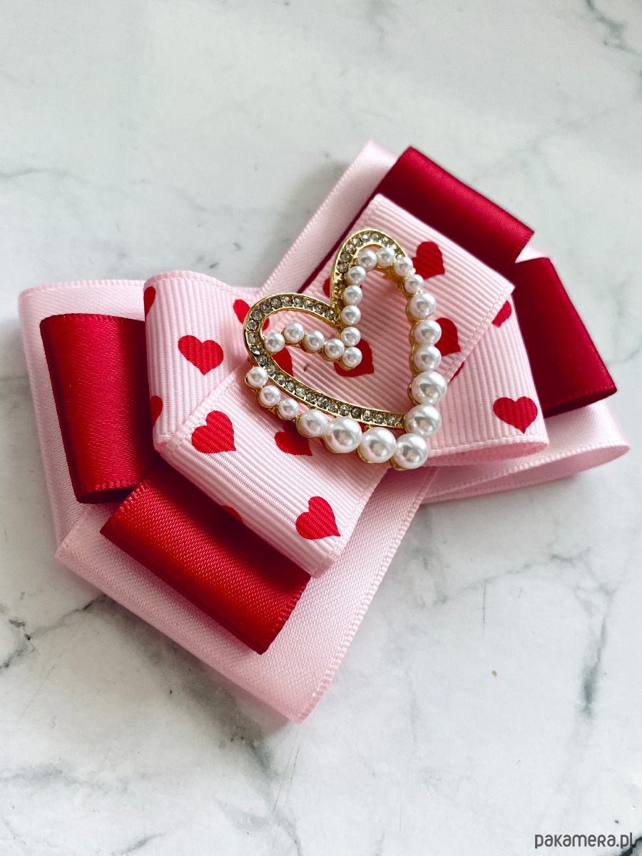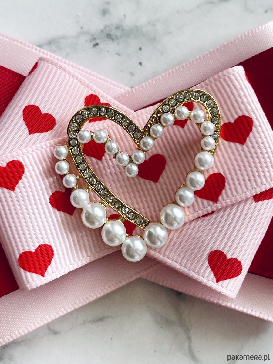 Na środku cudne podwójne Serce, jedno w kolorze złotym drugie wykonane z perełek o różnej wielkosci.
