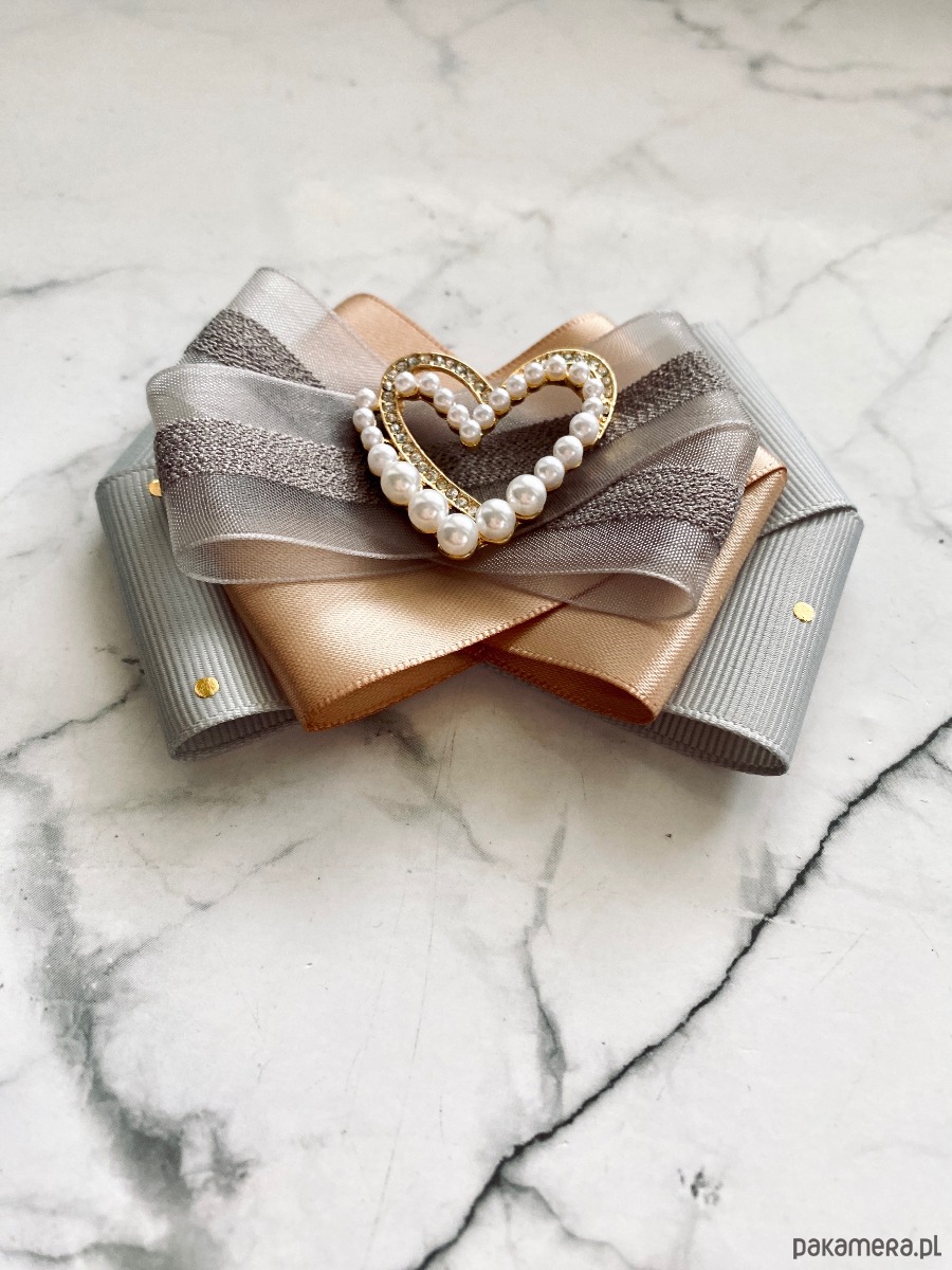 Broszka wykonana z wysokiej jakości taśm i dodatków.