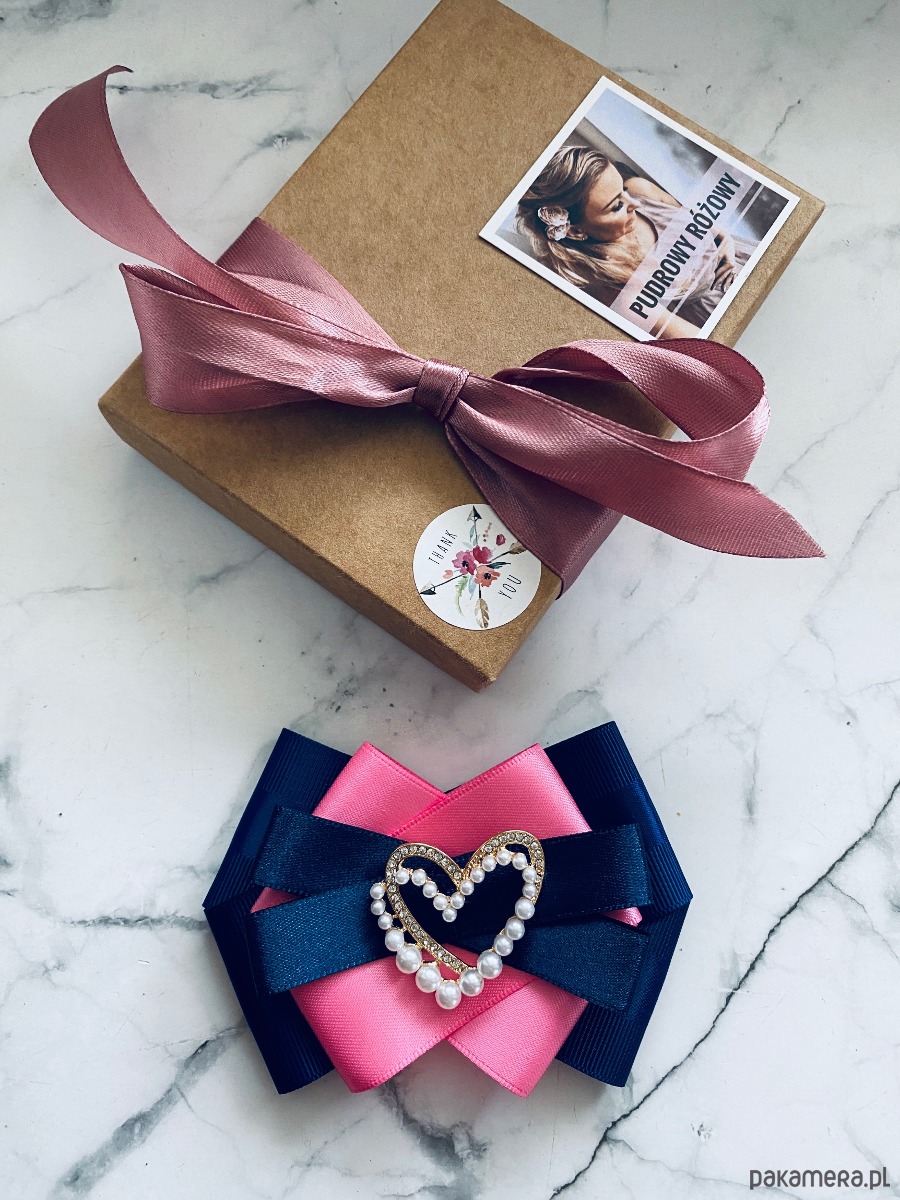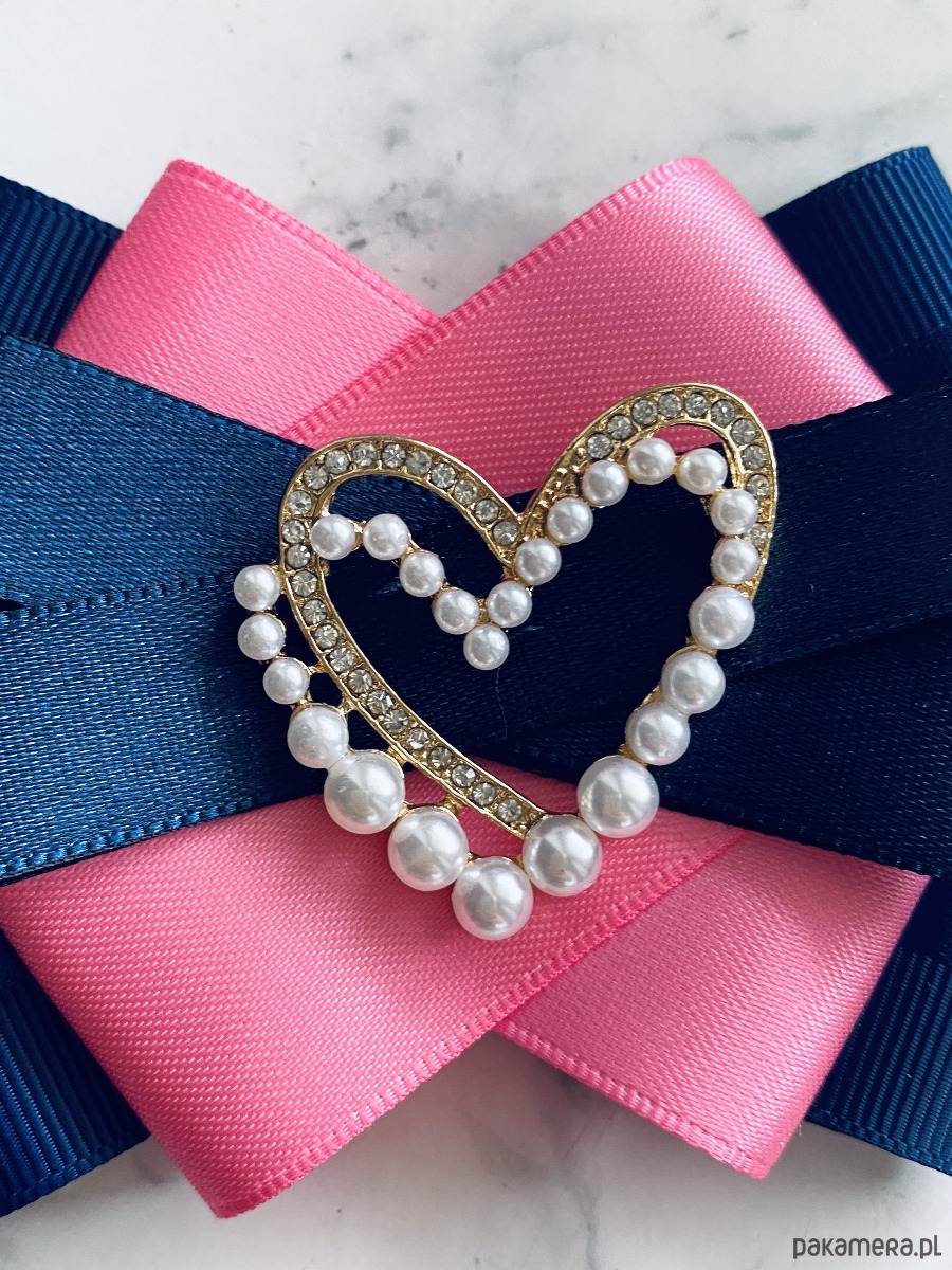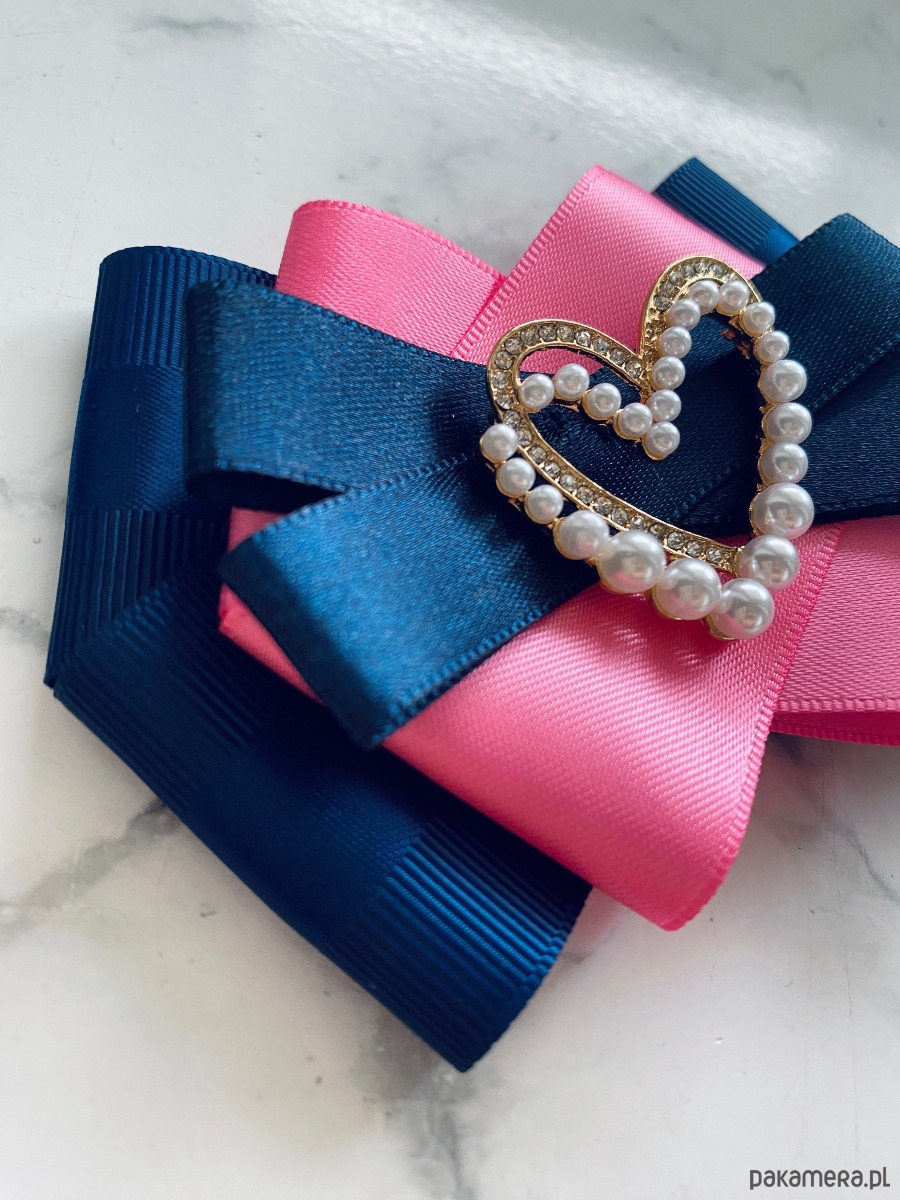 Broszka wykonana z wysokiej jakości taśm i dodatków.
