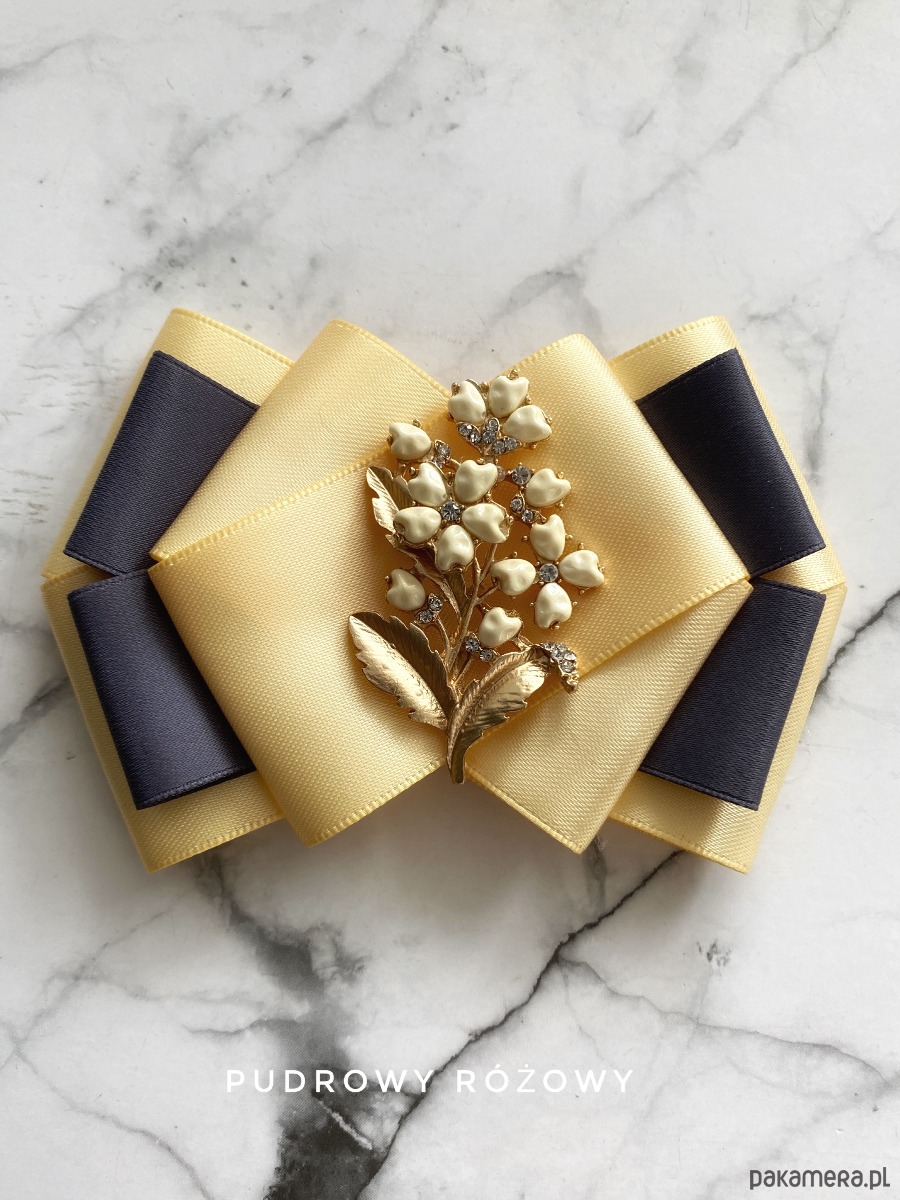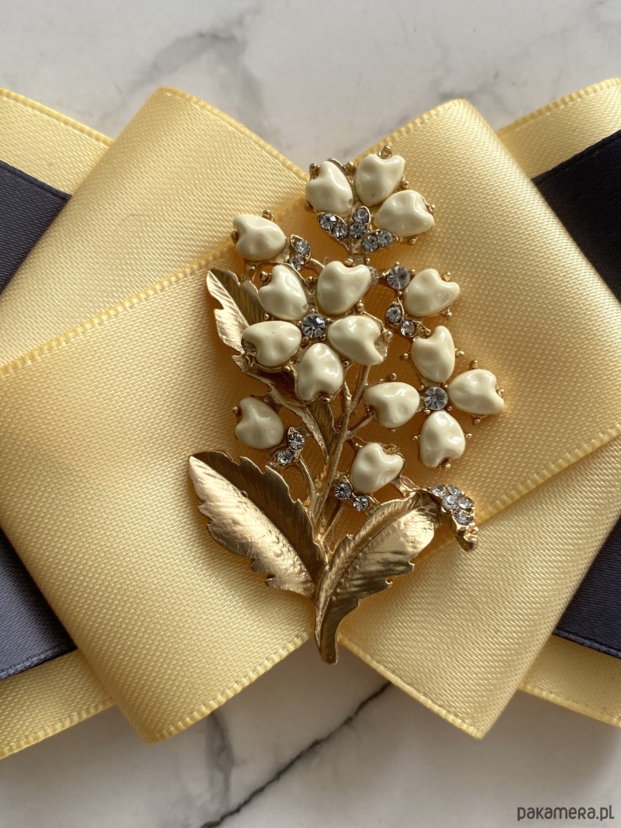 Broszka wykonana z wysokiej jakości taśm i dodatków.