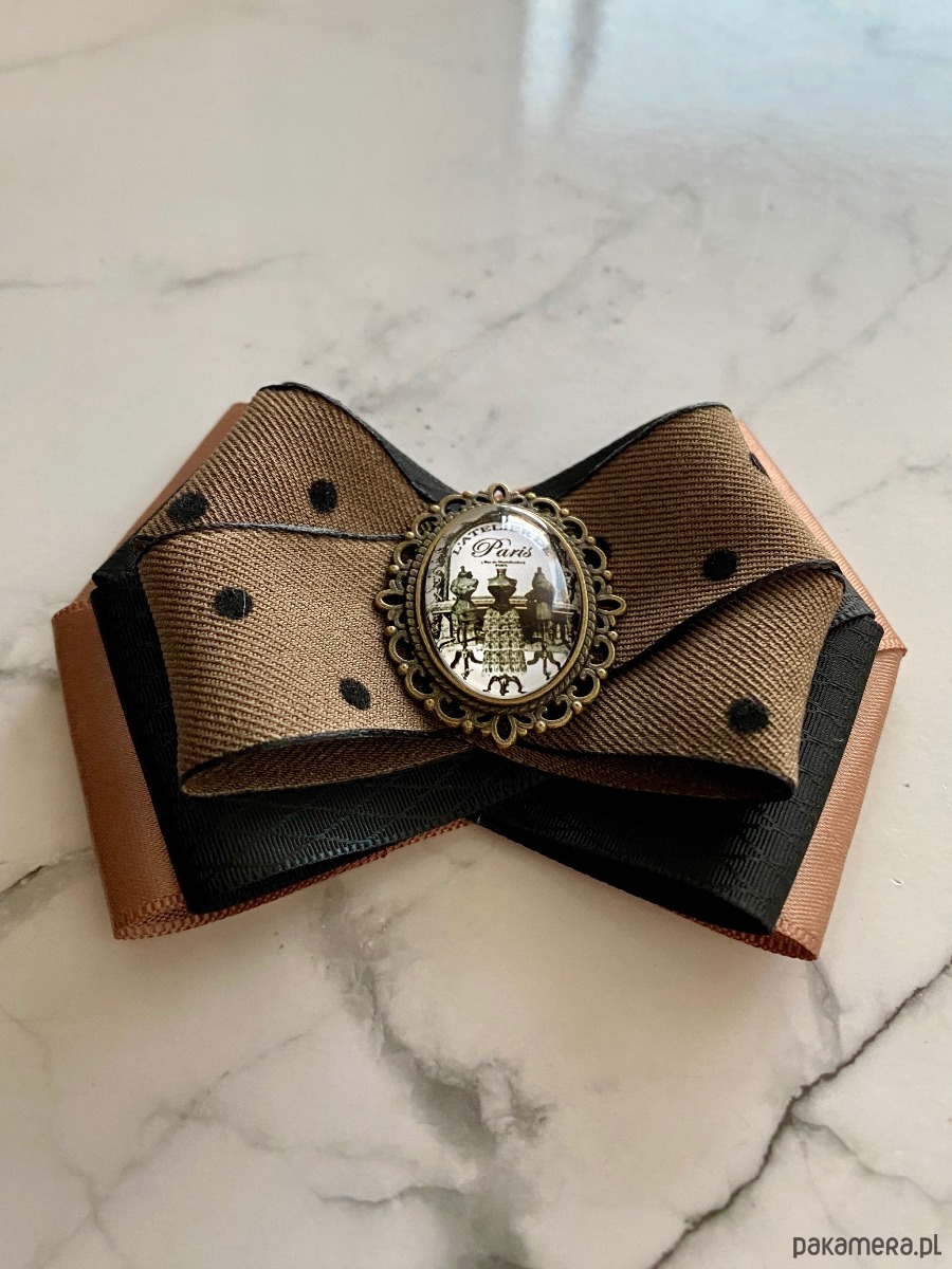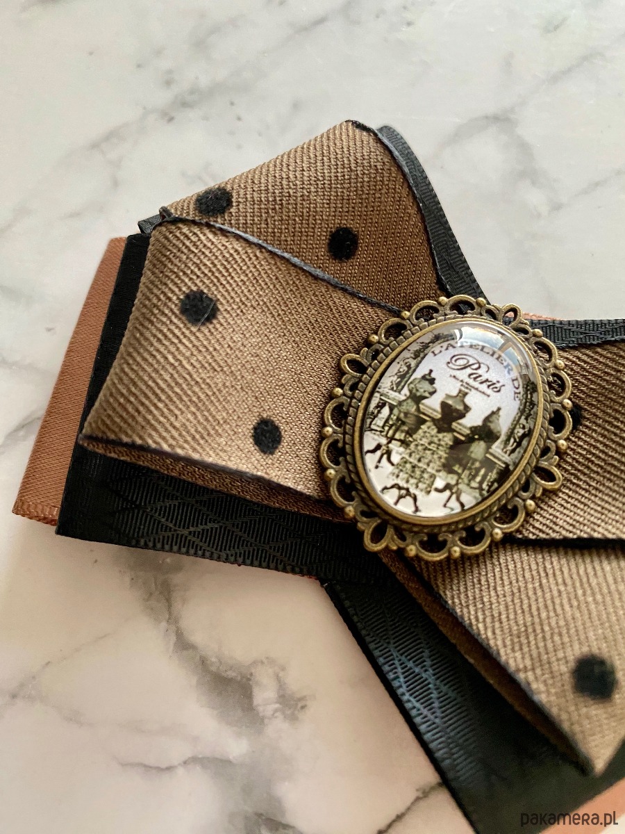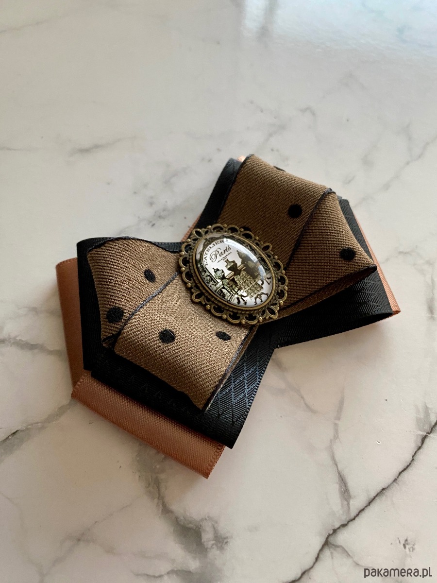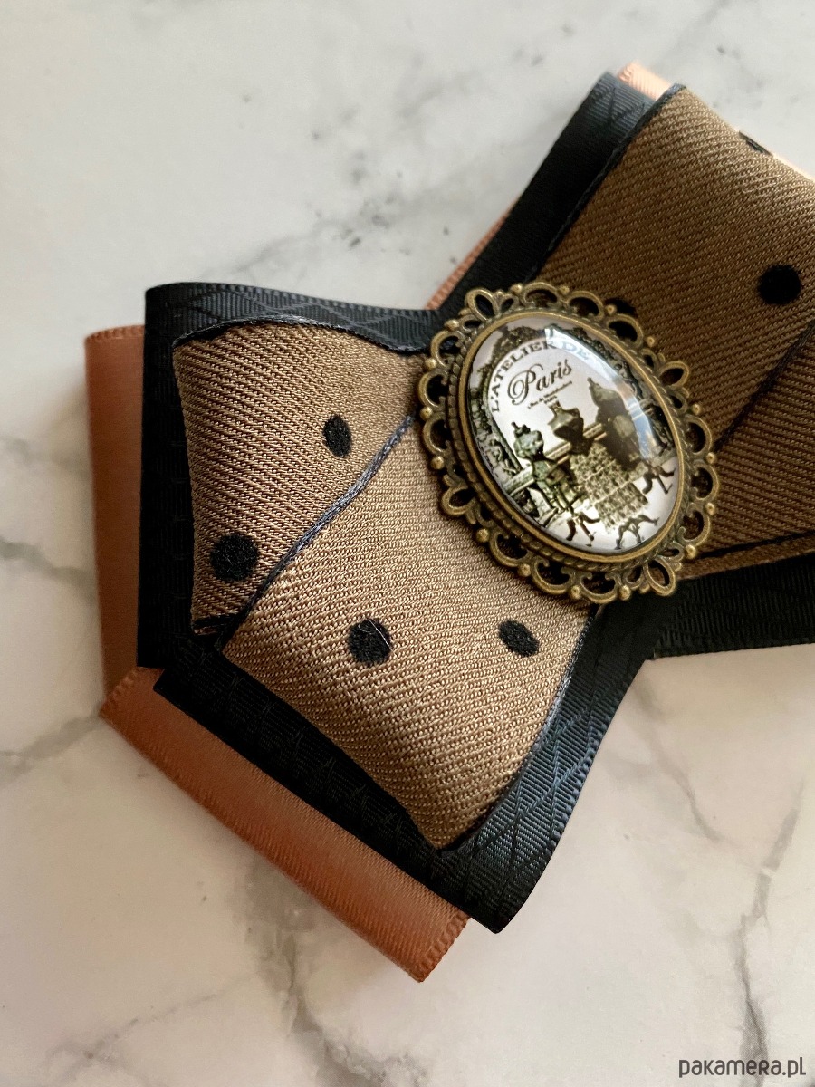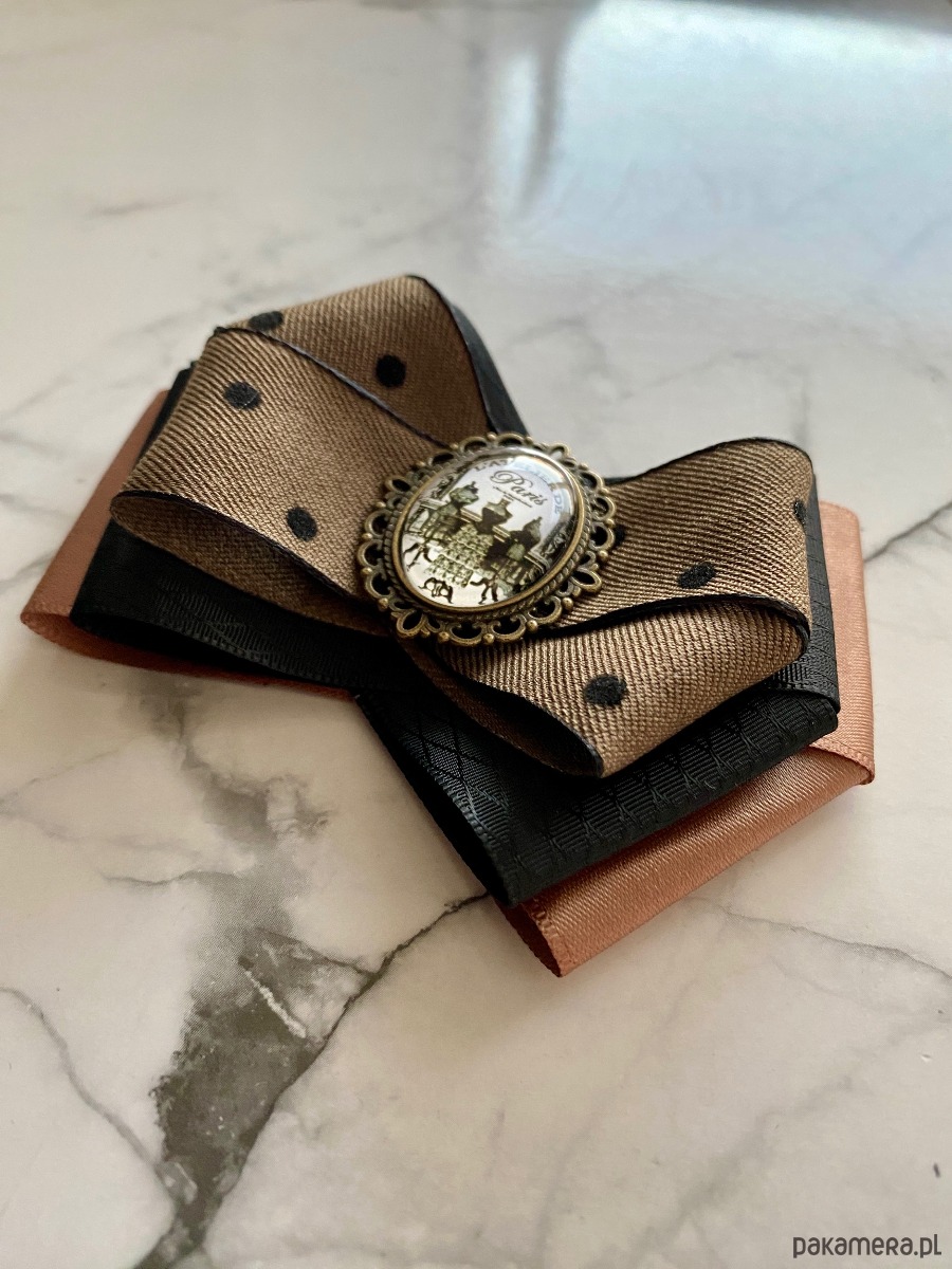 Broszka wykonana z wysokiej jakości taśm i dodatków.