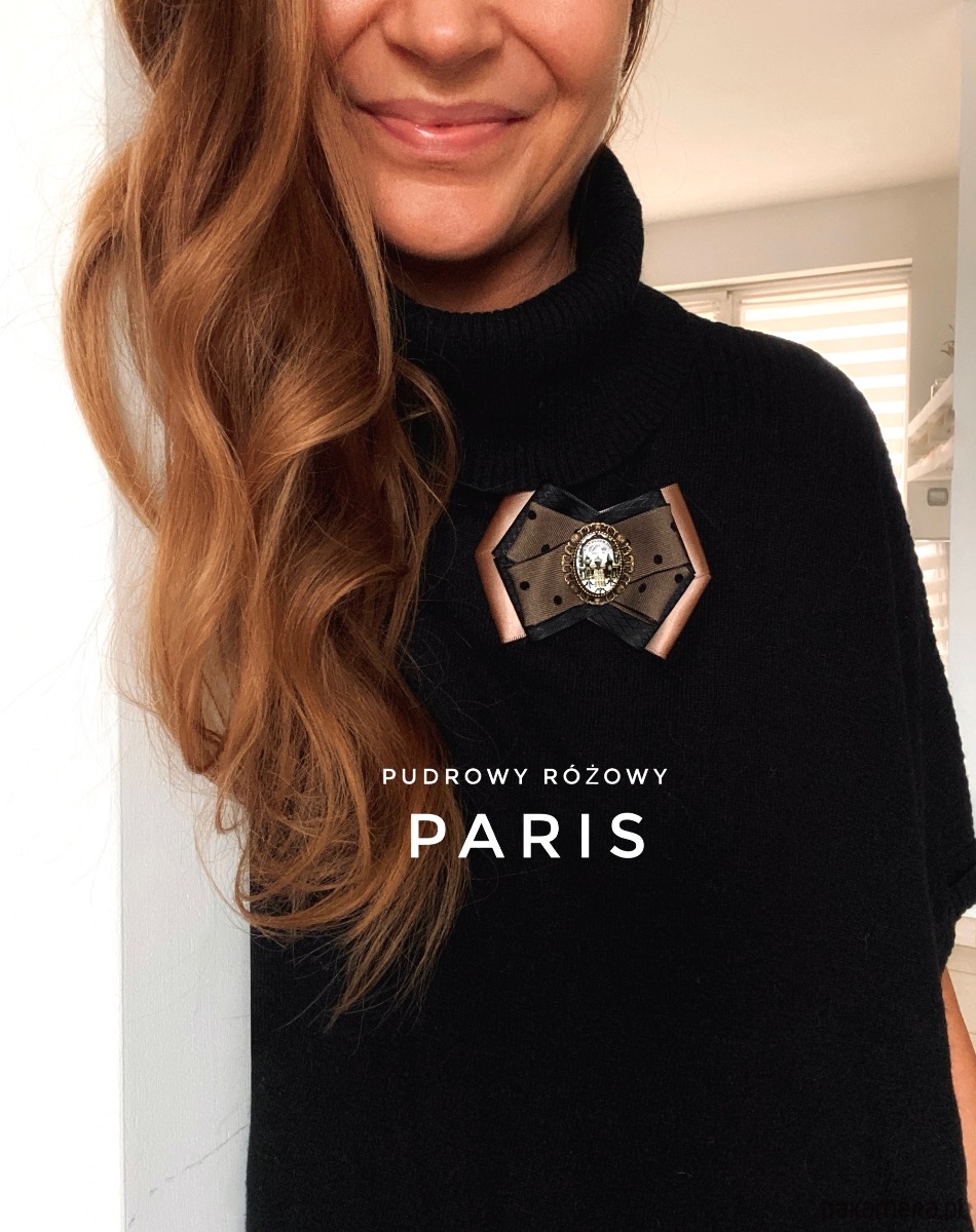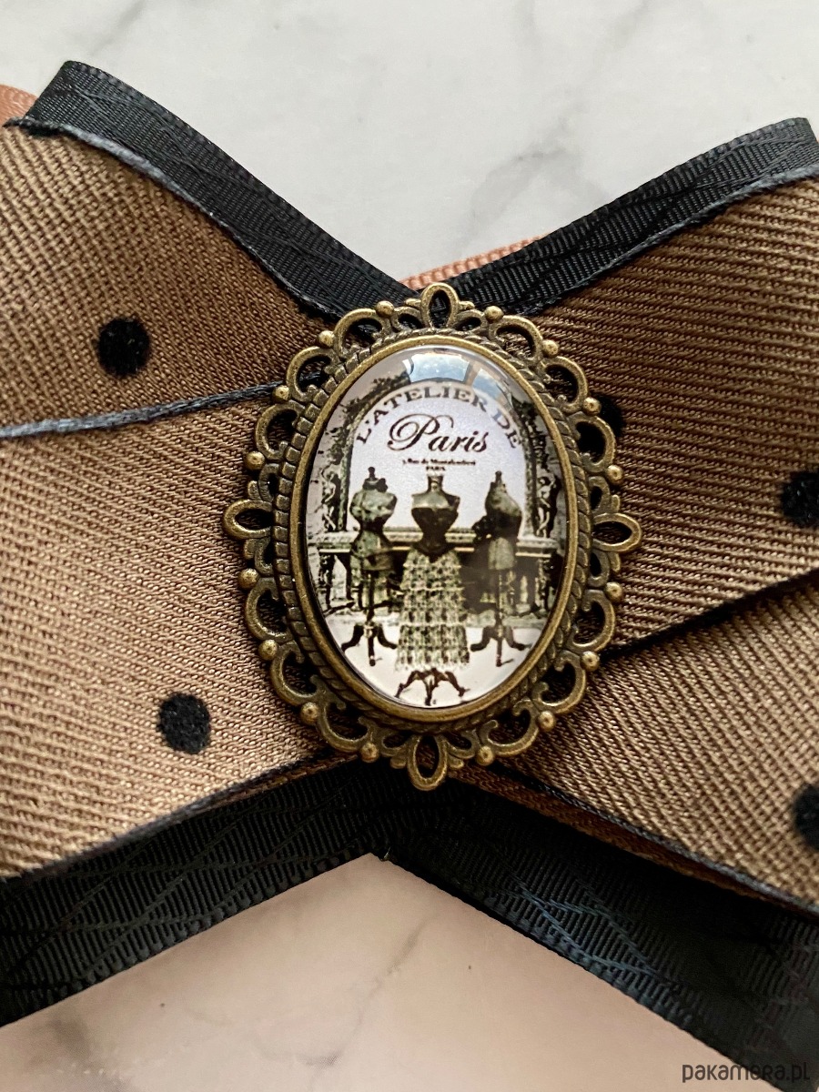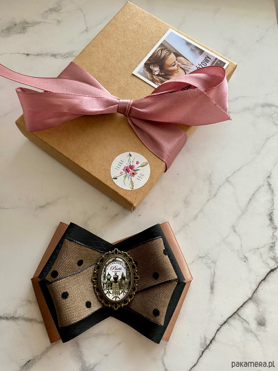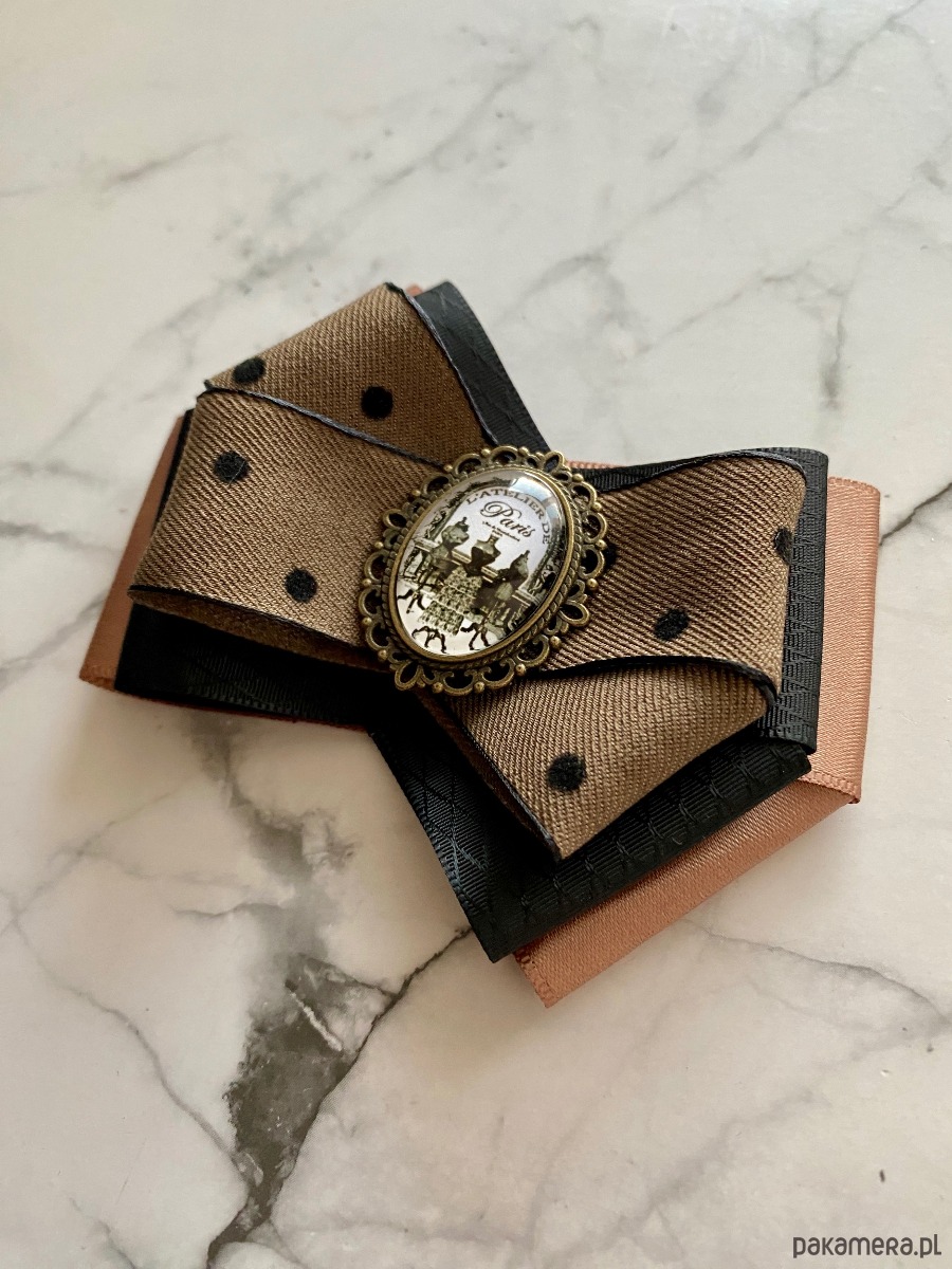 Broszka wykonana z wysokiej jakości taśm i dodatków.