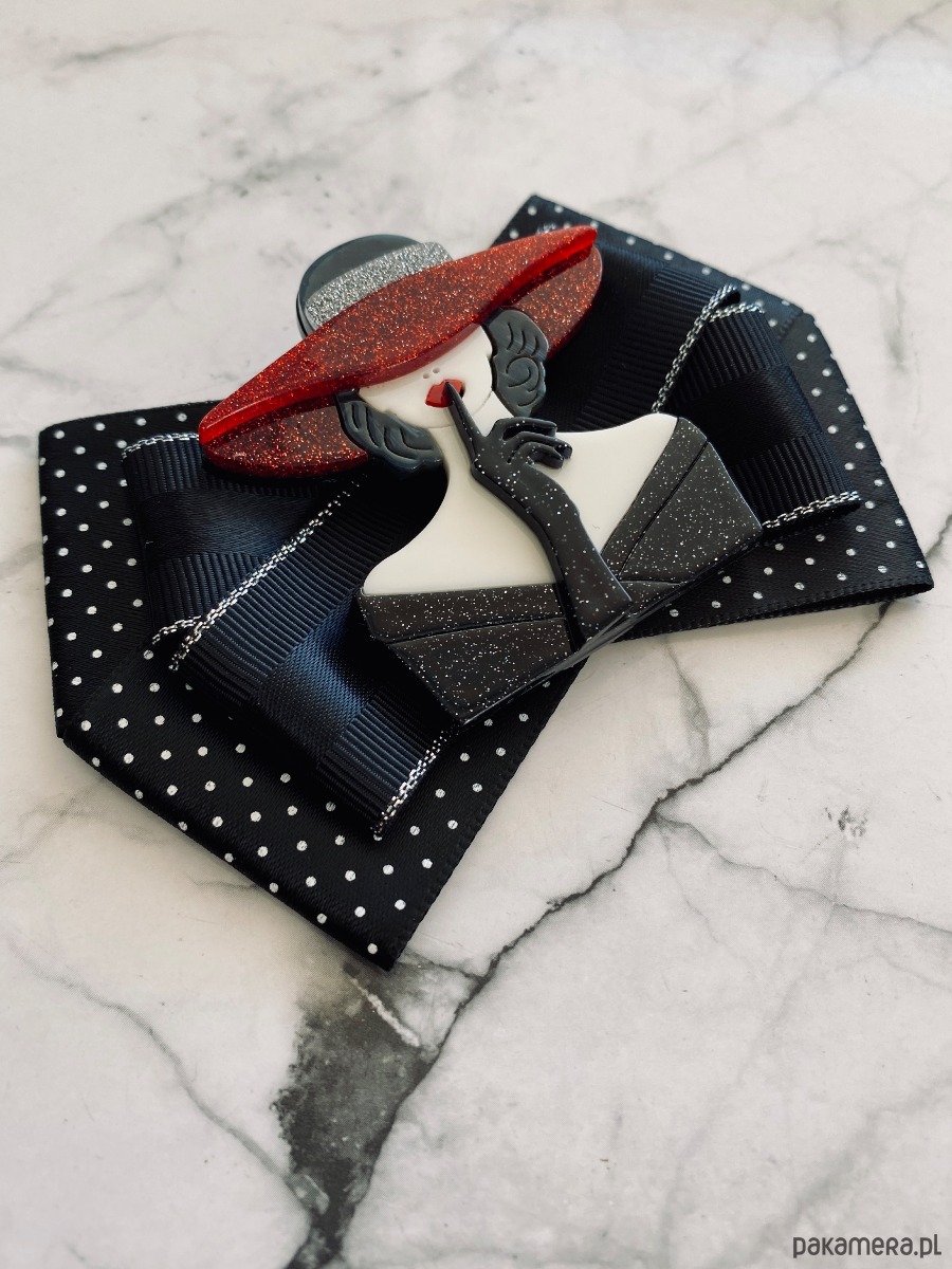 Broszka wykonana z wysokiej jakości taśm i dodatków.
