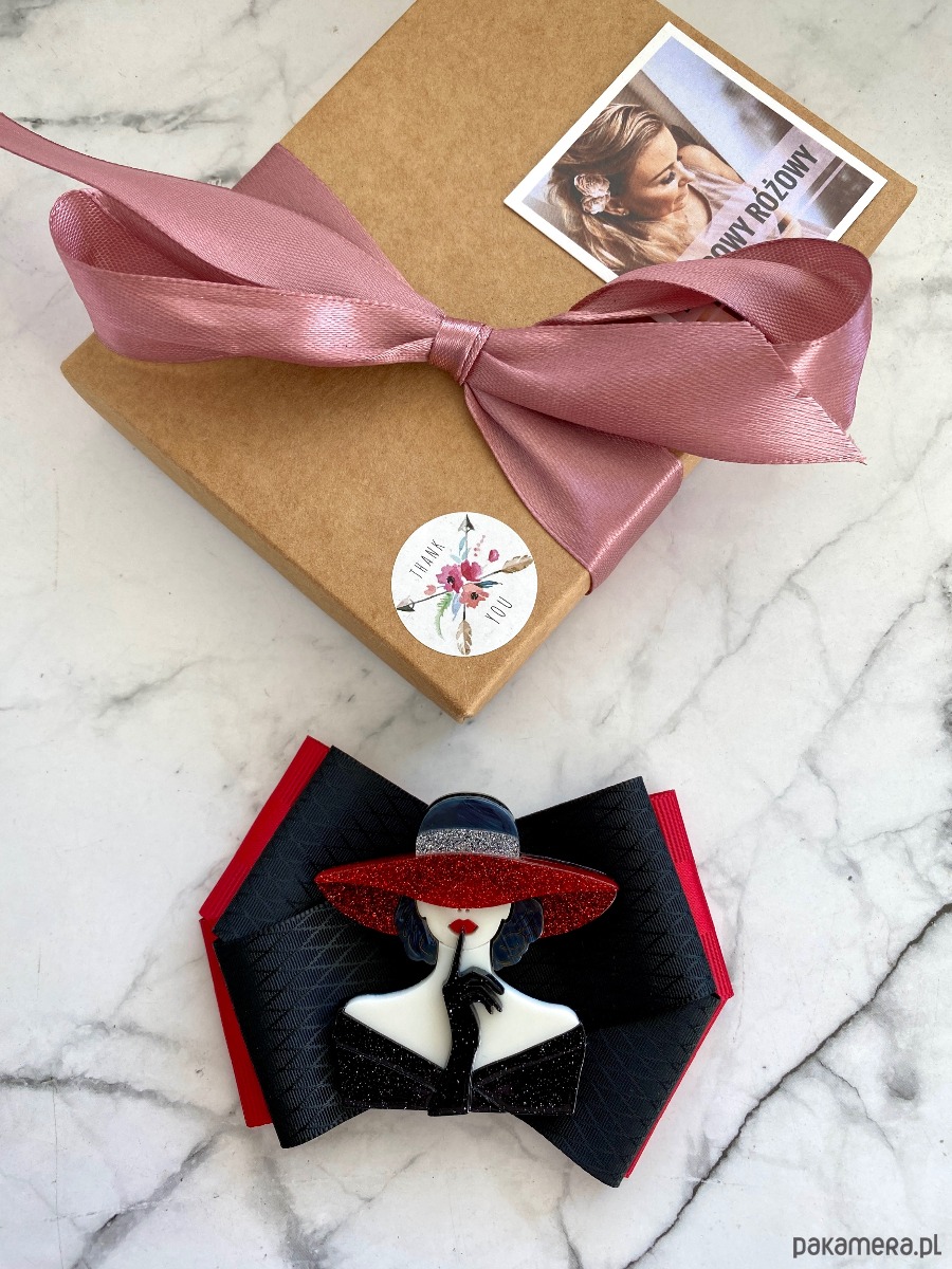 Broszka wykonana z wysokiej jakości taśm i dodatków.