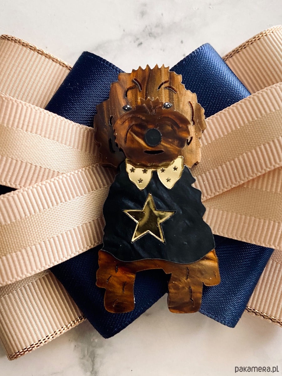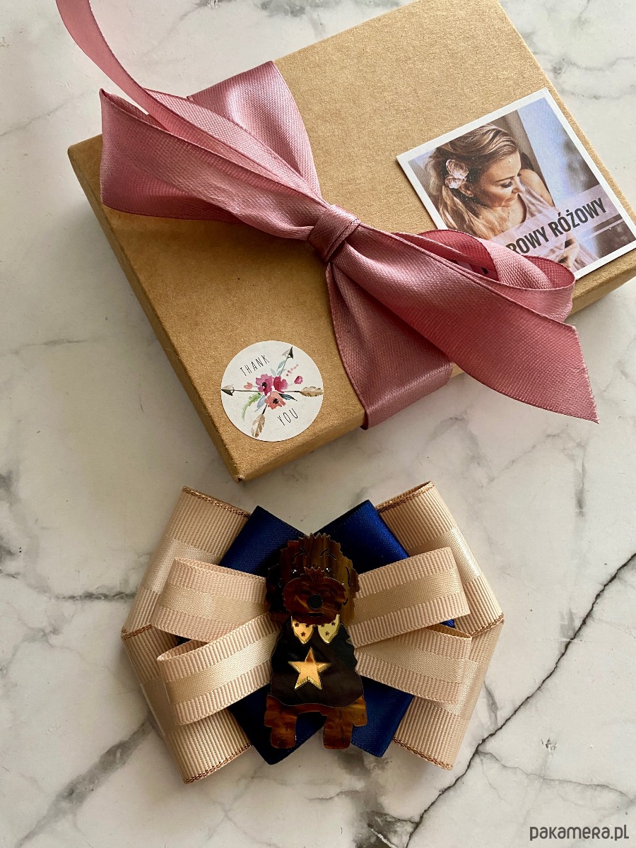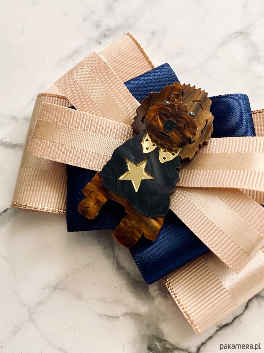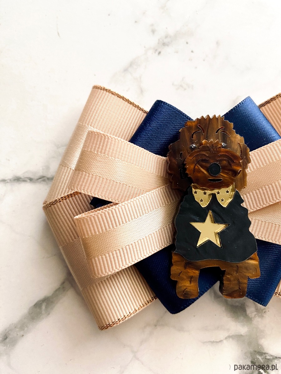 Broszka wykonana z wysokiej jakości taśm i dodatków.