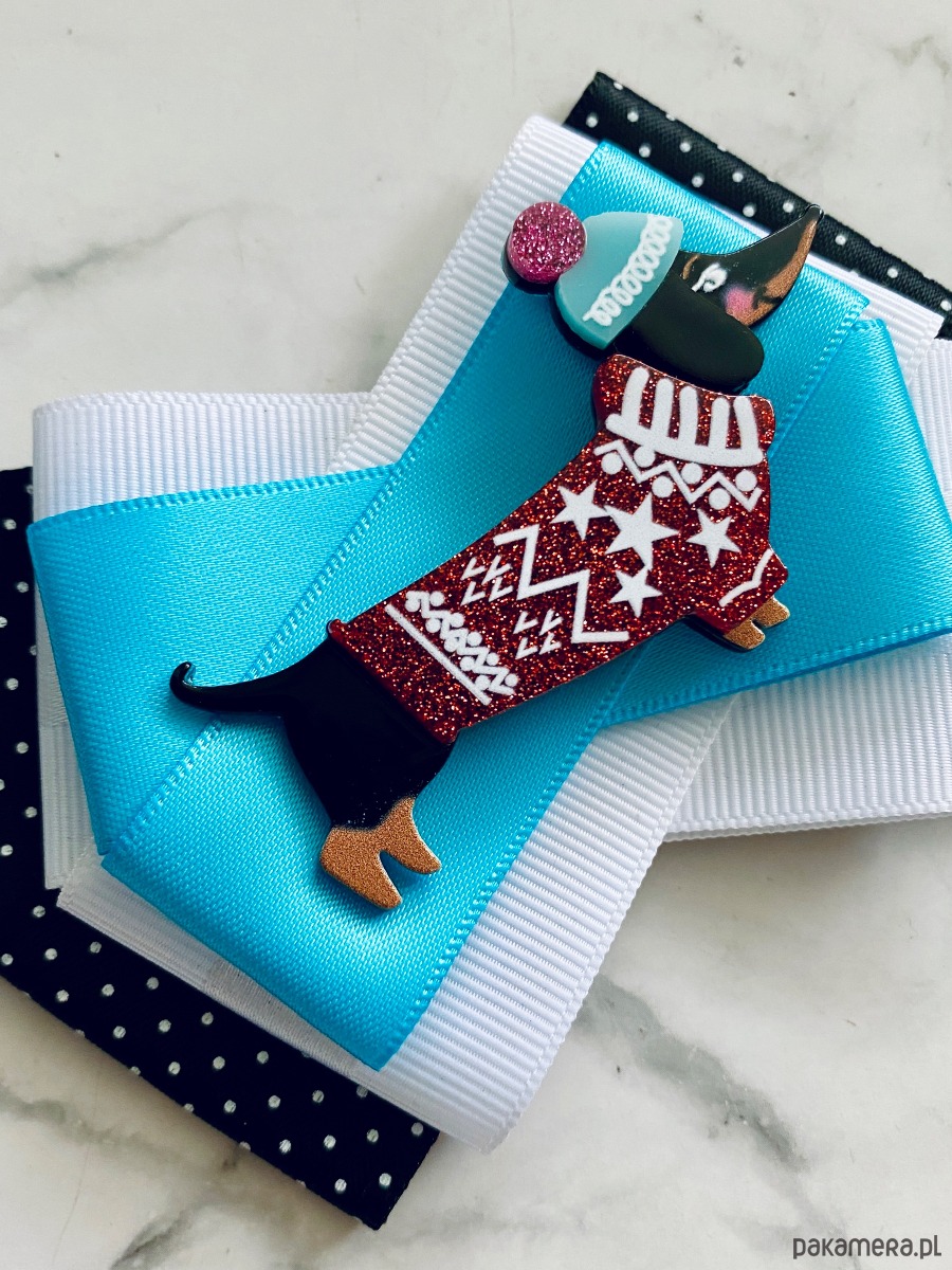 Niezwykle dekoracyjny Zimowy Jamnik 3d wykonany z wysokogatunkowego akrylu z dodatkiem brokatu.