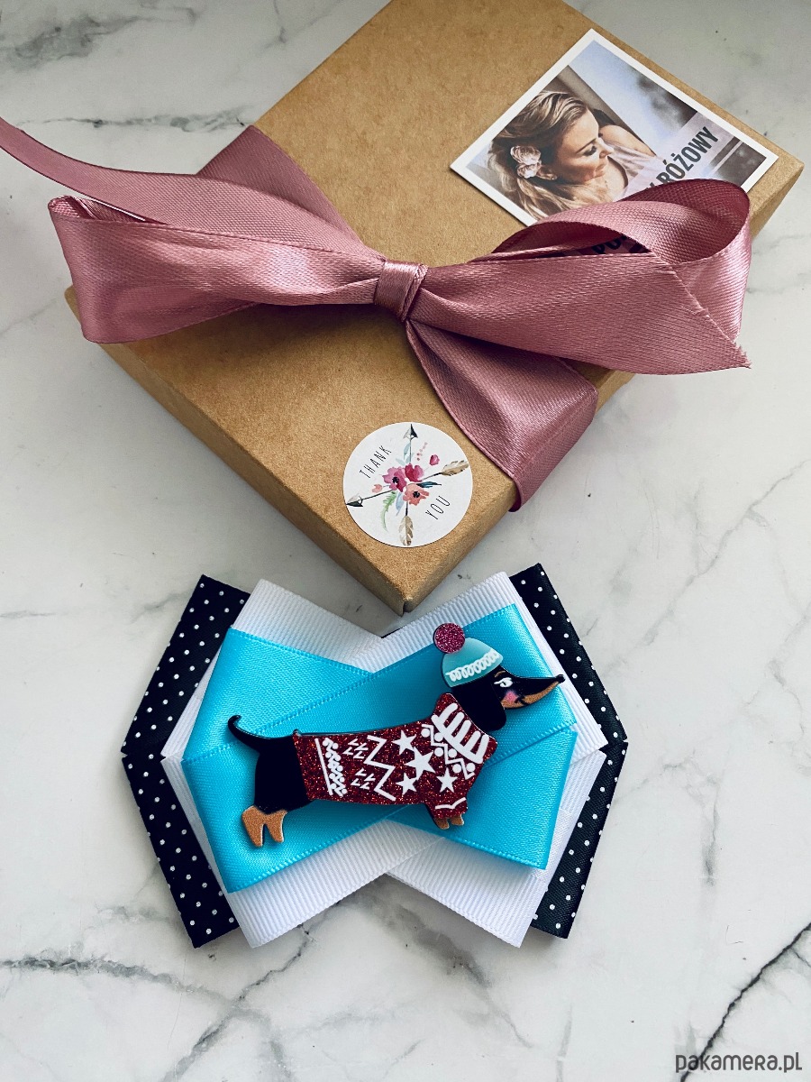 Broszka wykonana z wysokiej jakości taśm i dodatków.