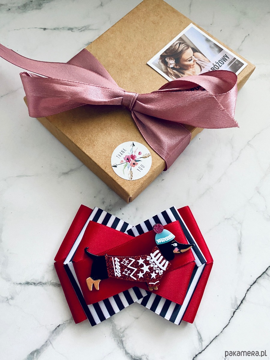 Broszka wykonana z wysokiej jakości taśm i dodatków.