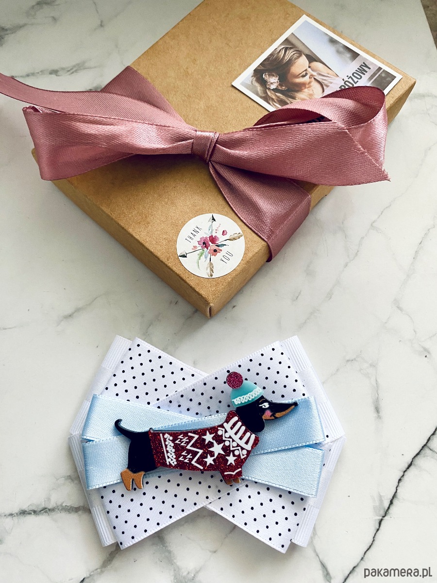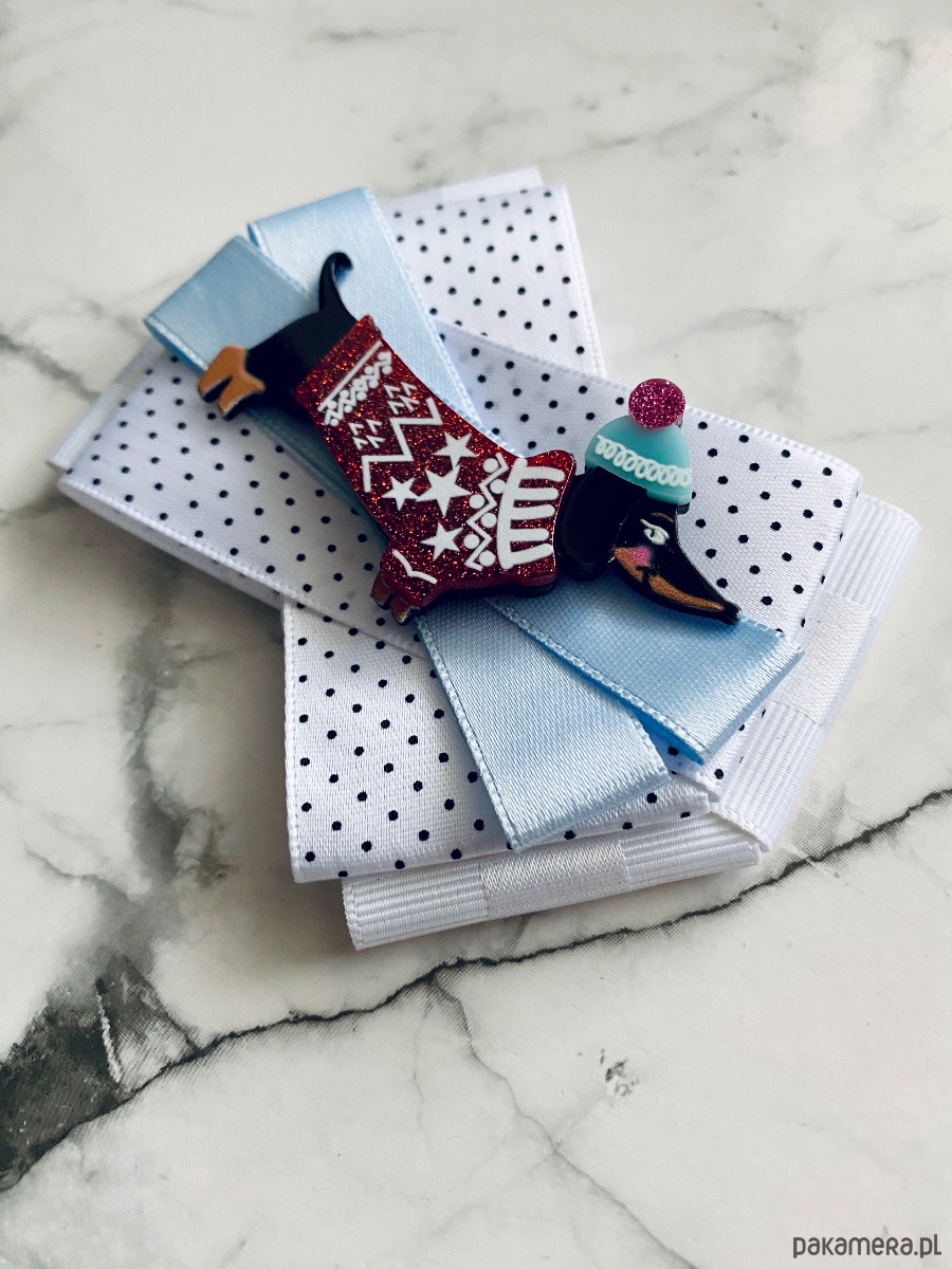 Broszka wykonana z wysokiej jakości taśm i dodatków.