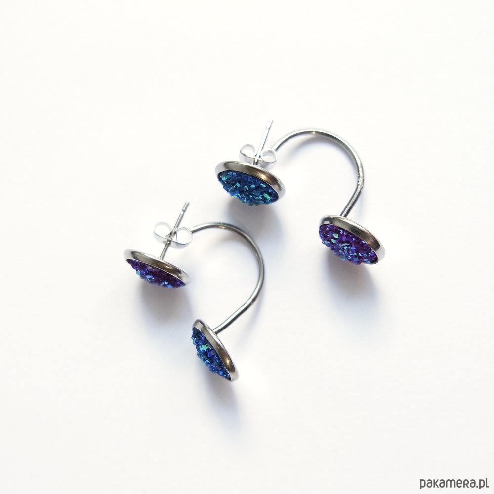 Kolekcja Starlight - kolczyki druzy niebieskie i fiolet - stal