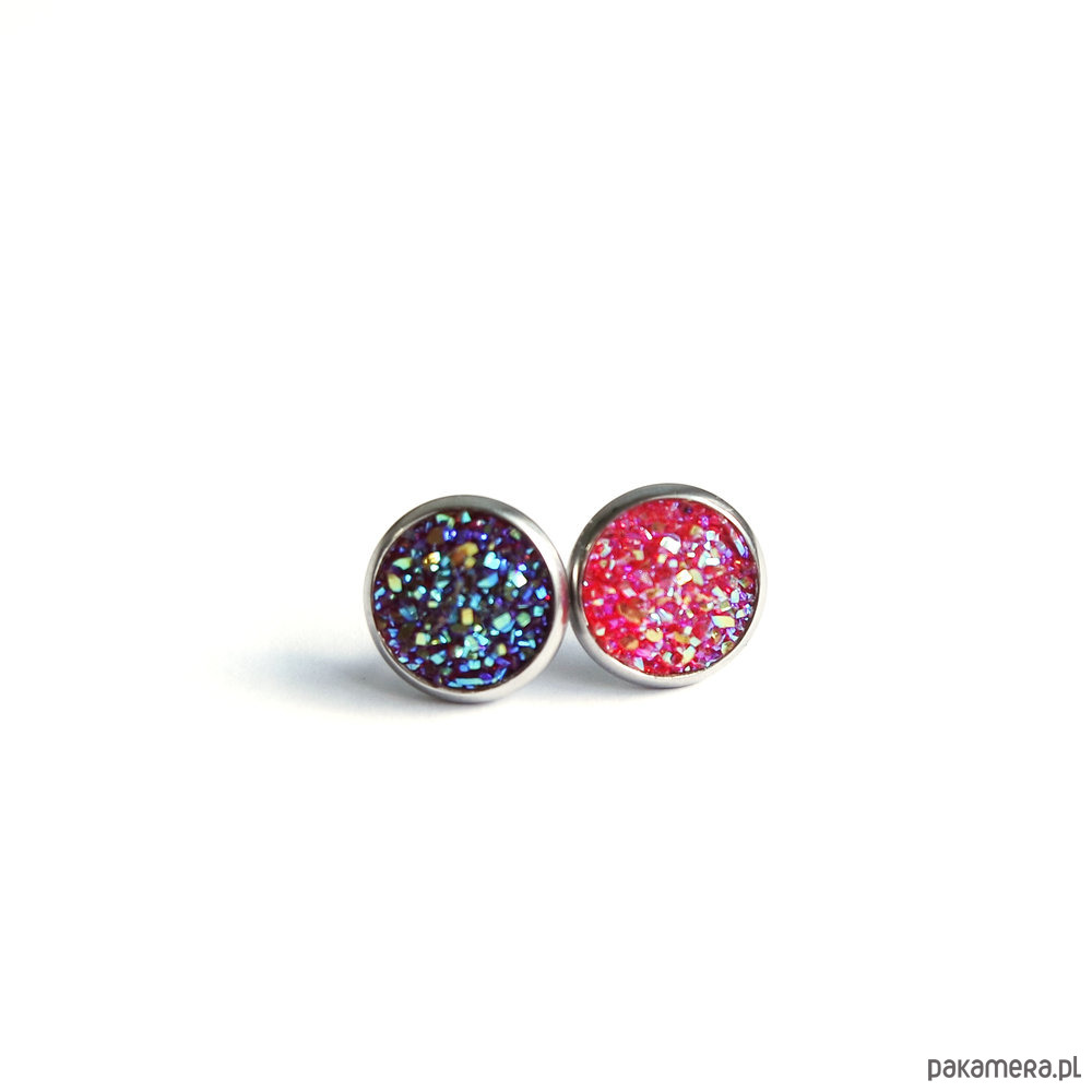 Oryginalne kolczyki z kaboszonami z żywicy mieniącymi się kolorami.