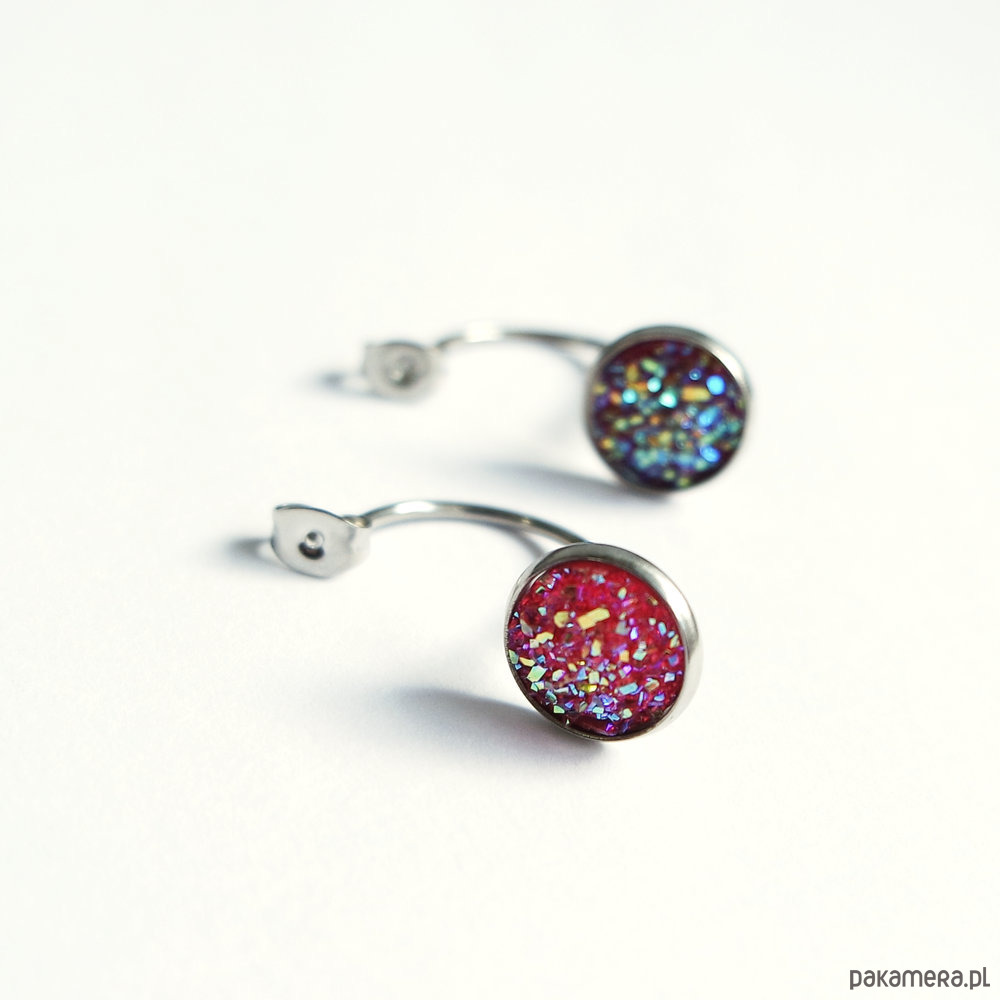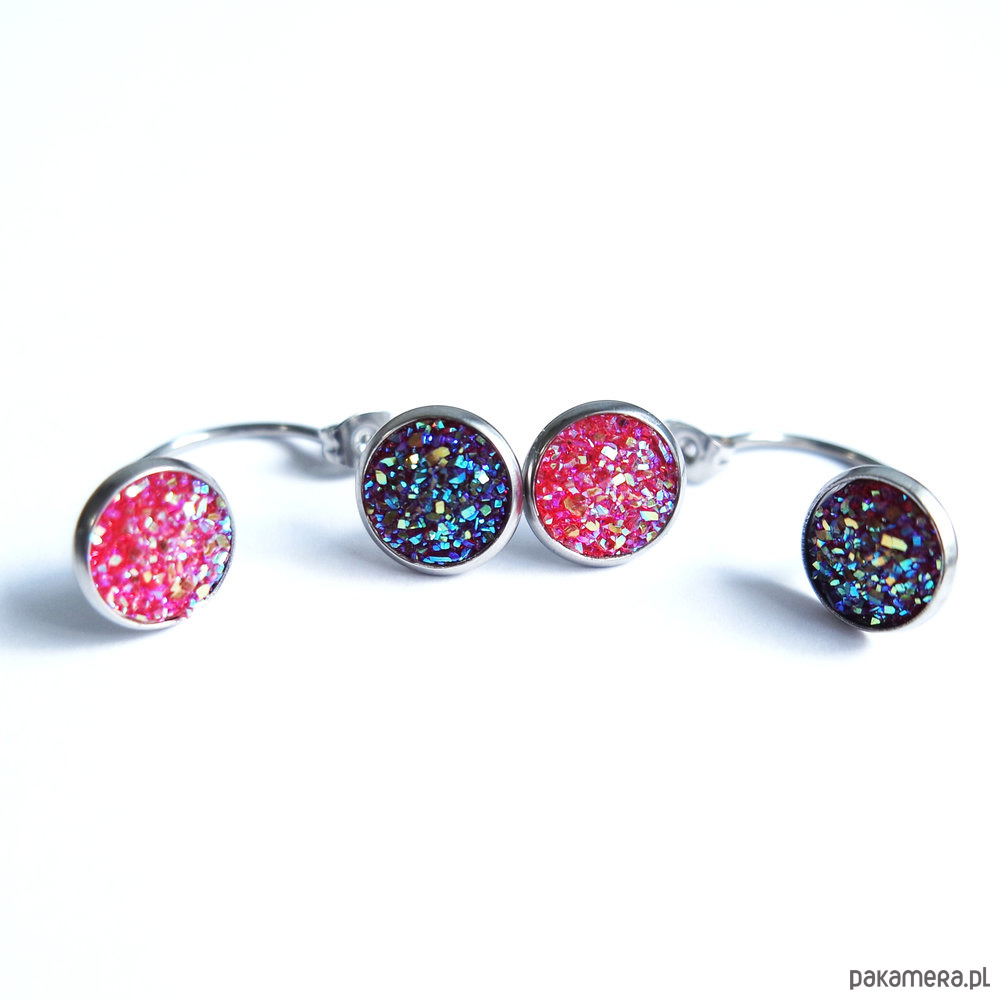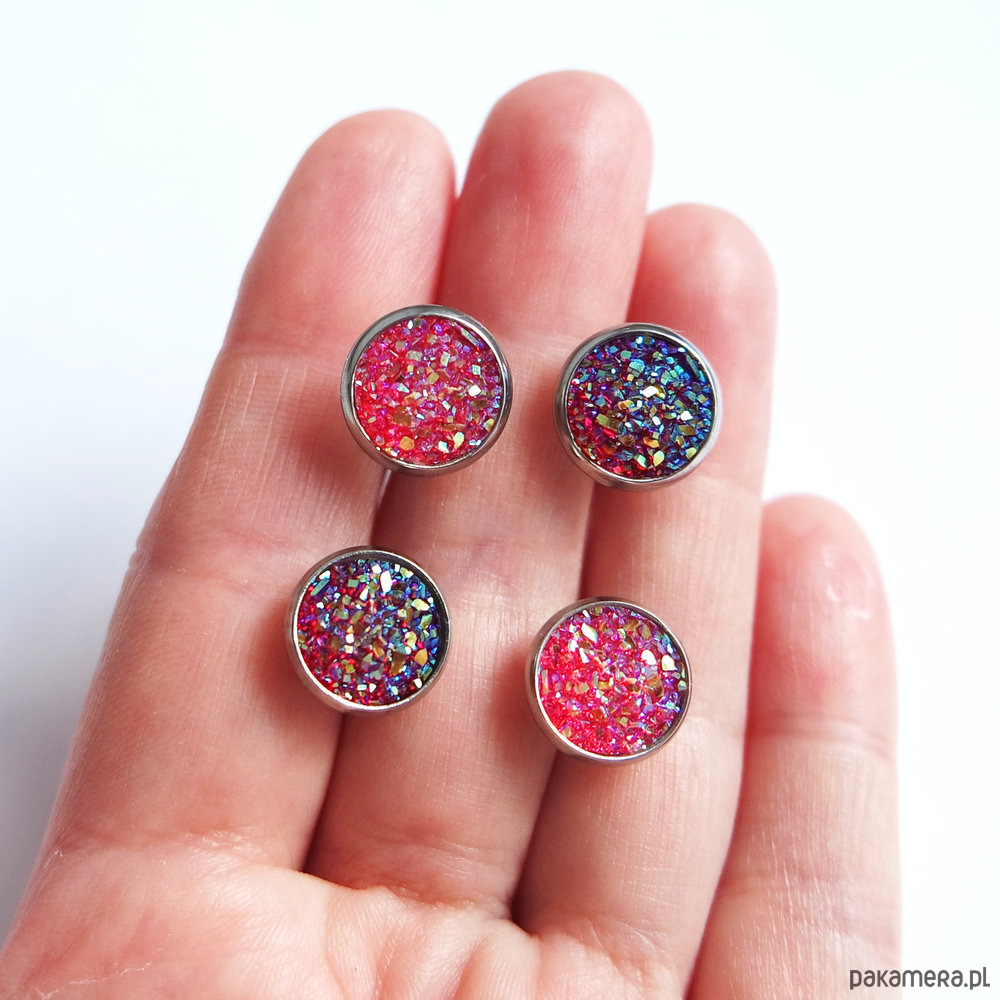 Kolekcja Starlight - kolczyki druzy róż i burgund - stal