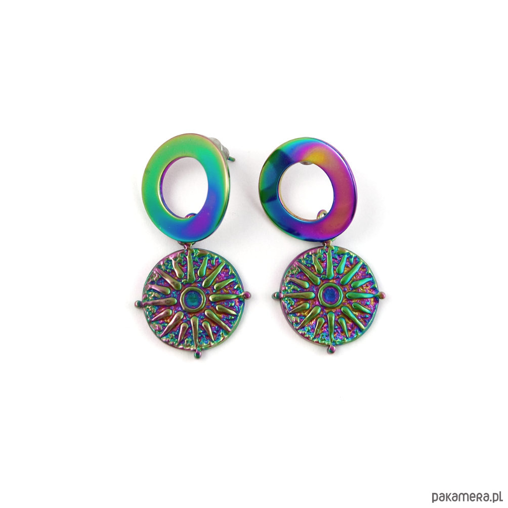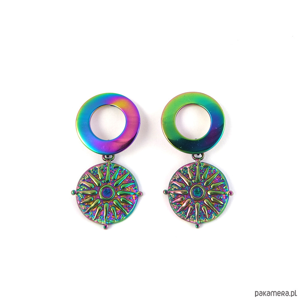 Oryginalne kolczyki z w formie koła oraz zawieszki z gwiazdą.