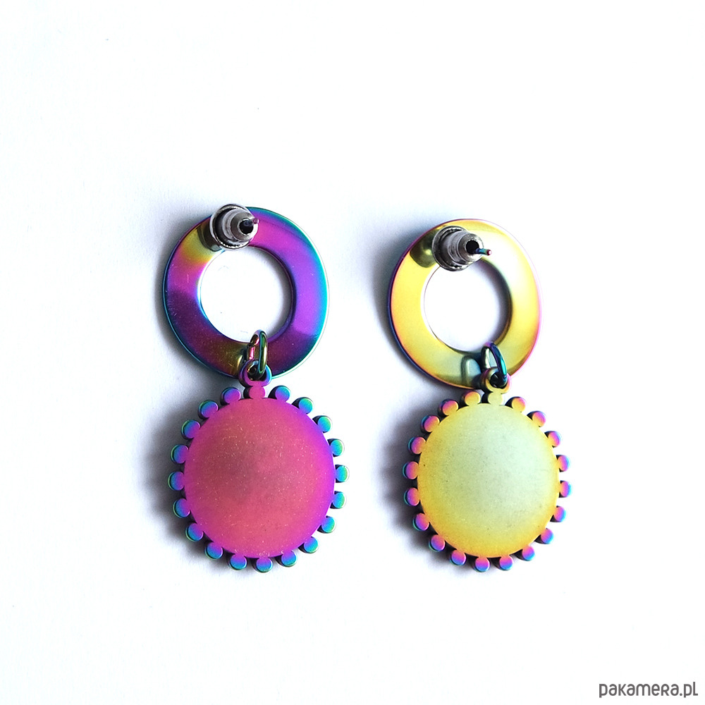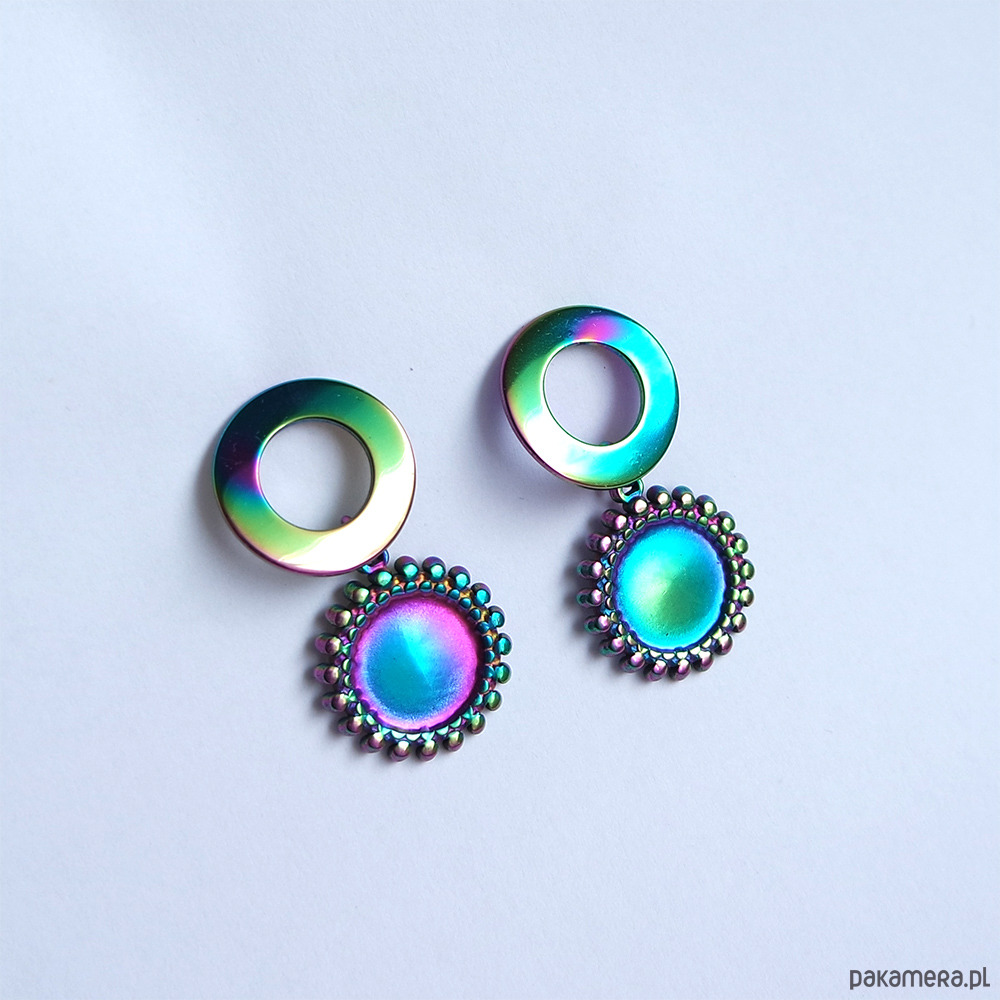 Oryginalne kolczyki w formie koła oraz zawieszki.