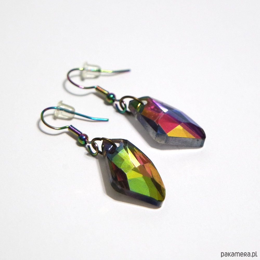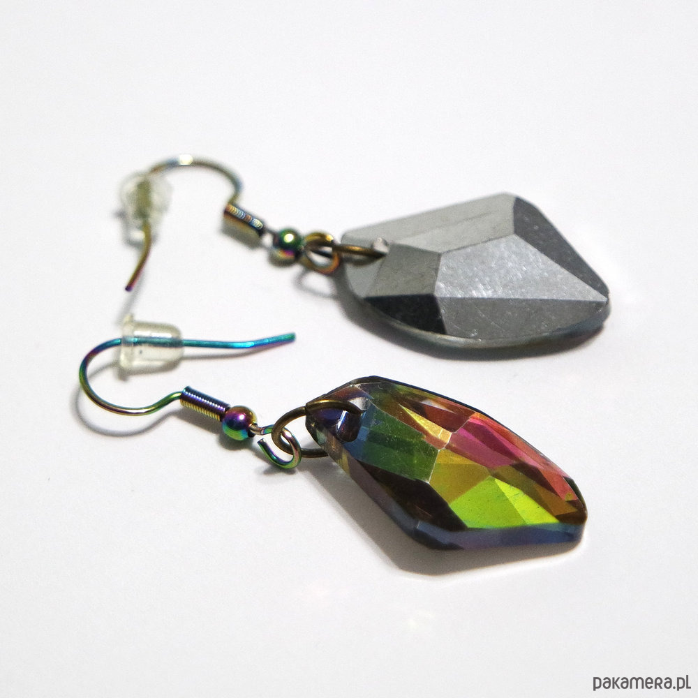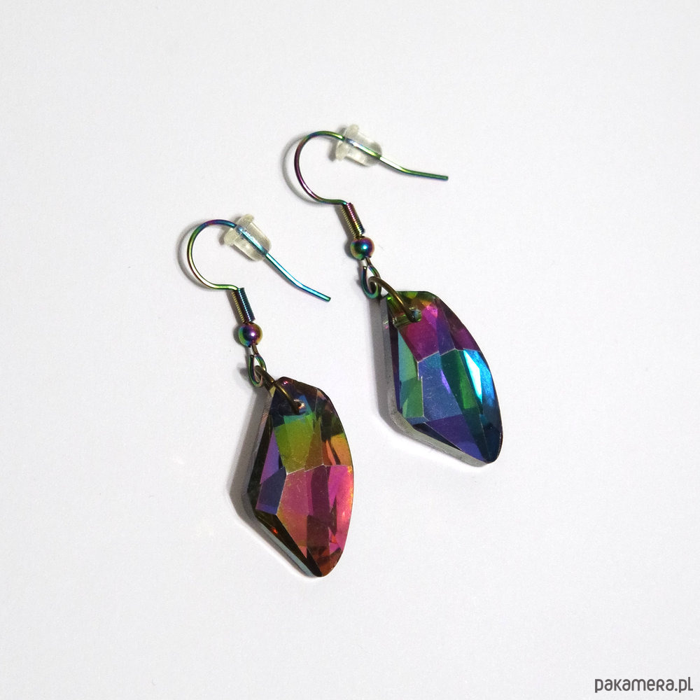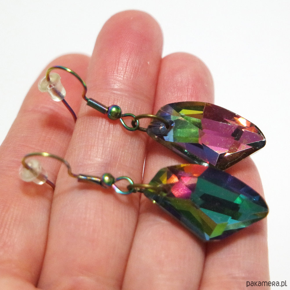 Oryginalne kolczyki z kolorowymi kryształkami.