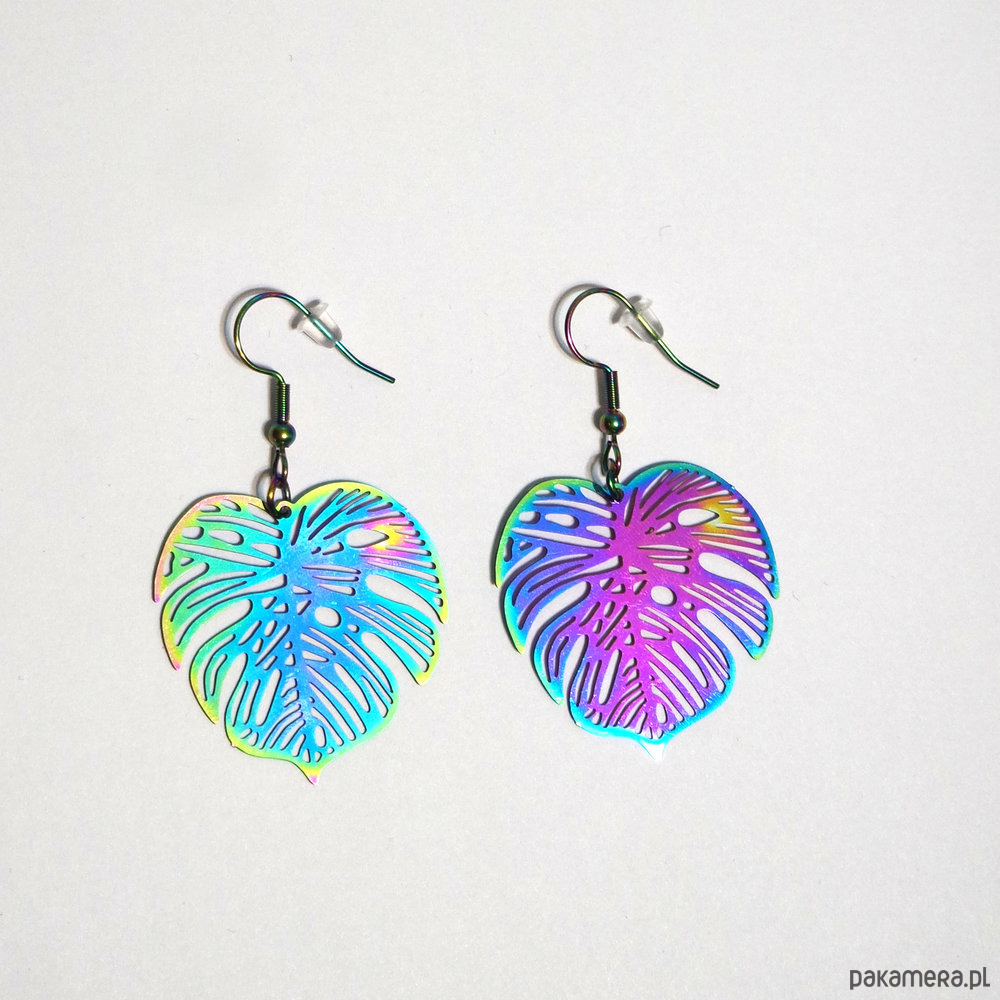 Oryginalne kolczyki z zawieszkami w kształcie liścia monstery.