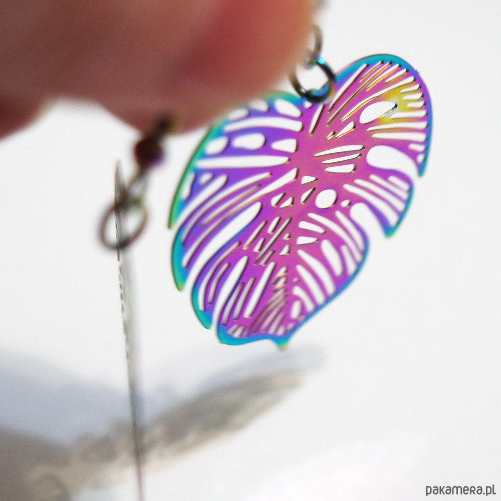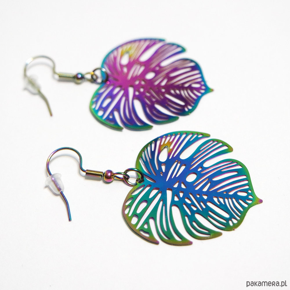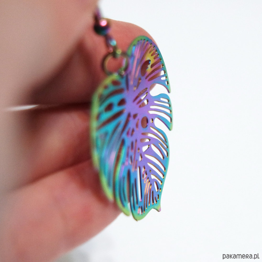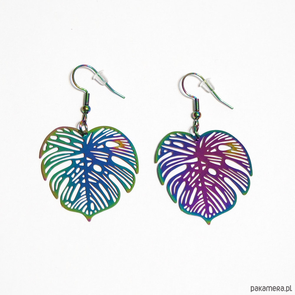 Kolekcja Starlight - kolczyki liść Monstera - stal