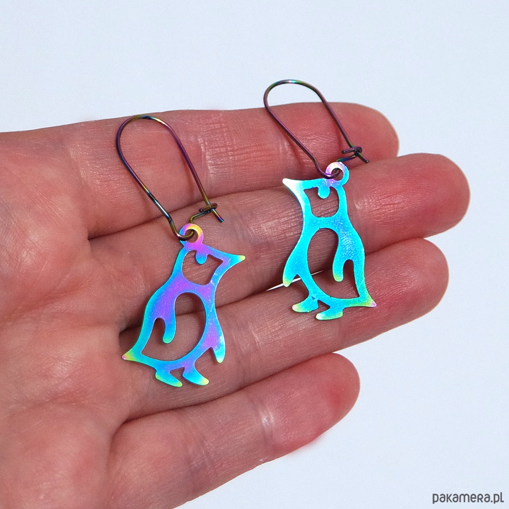 Oryginalne kolczyki z zawieszkami w kształcie pingwina.