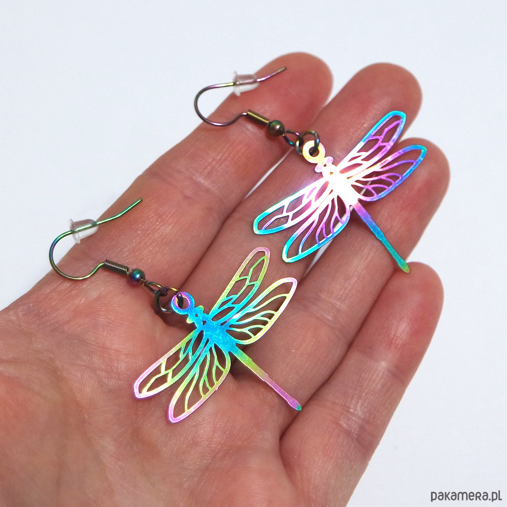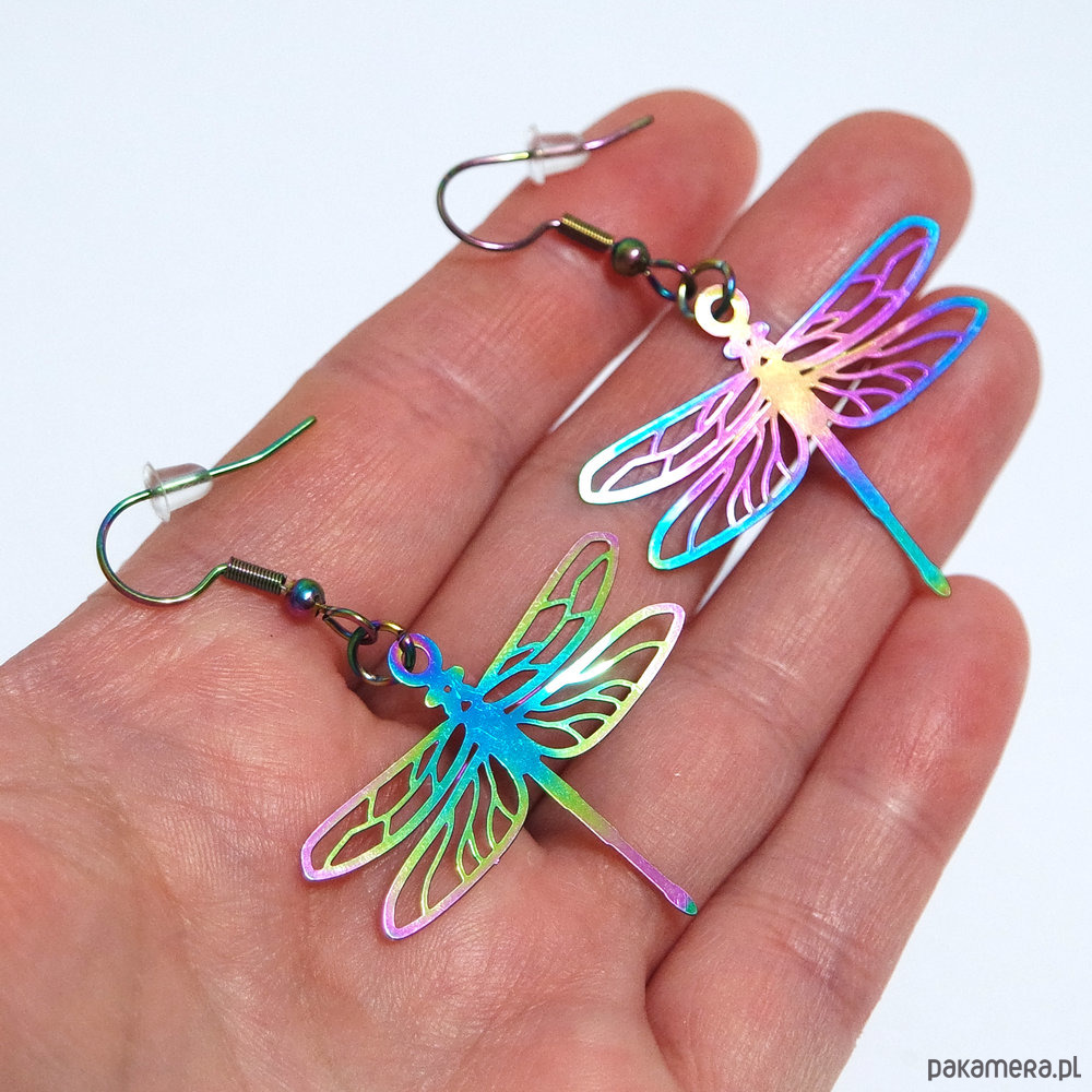 Wymiary ważki ok. 3,5x3 cm, długość kolczyków ok.5,5 cm.