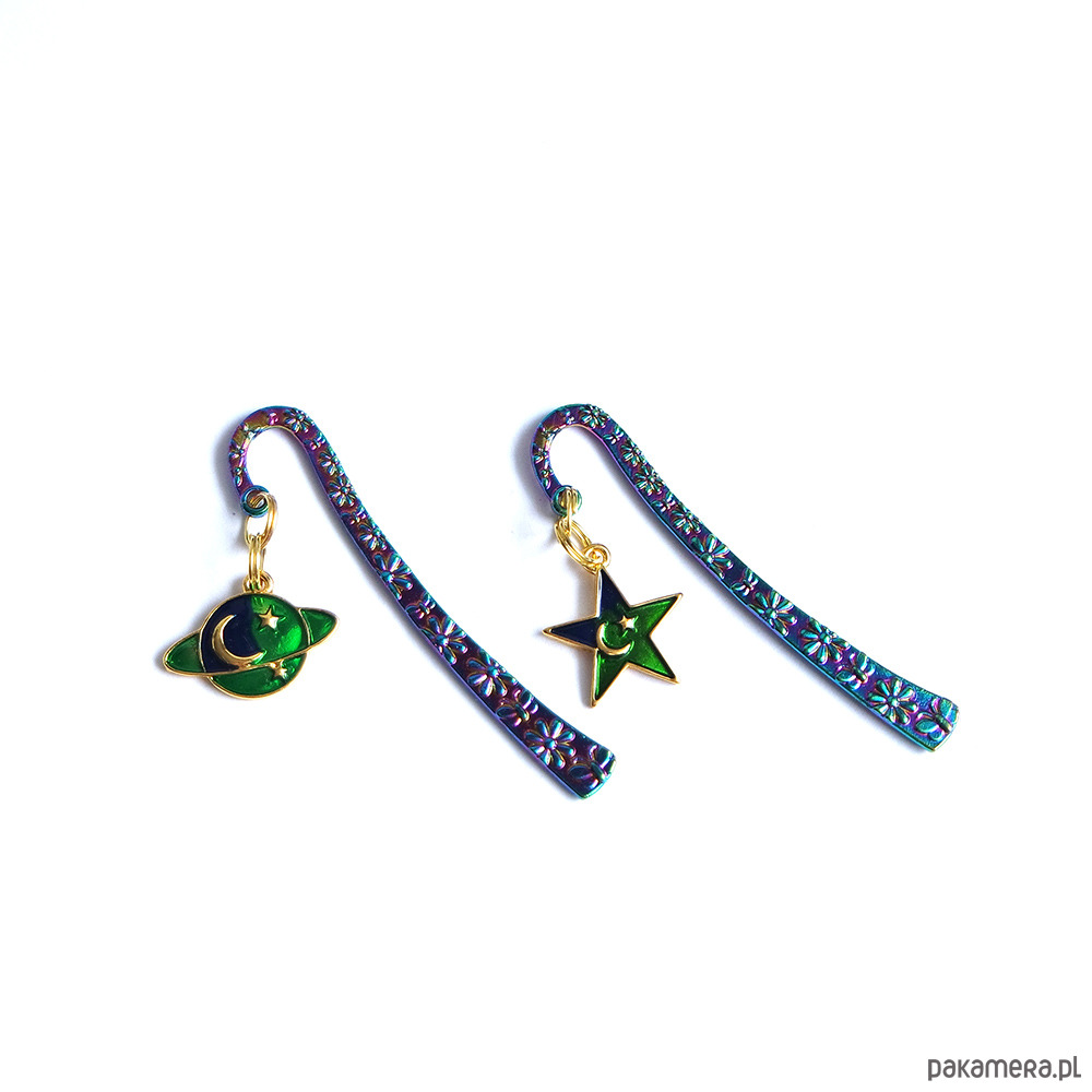Oryginalne zakładki do książki z emaliowaną zawieszką z kosmosem.