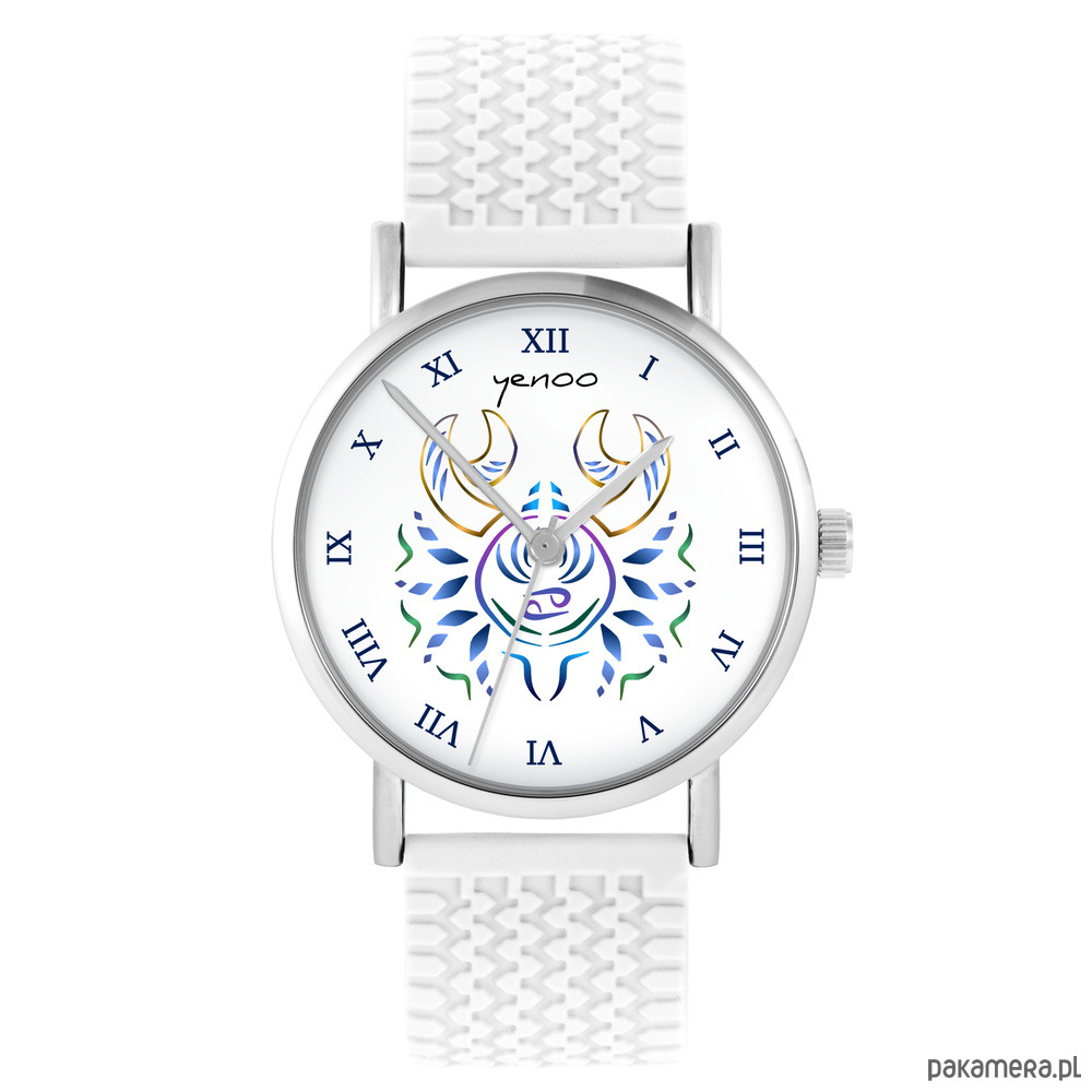 Pasek wykonany jest z silikonu z oryginalnym wytłoczonym wzorem, zapinanie na regulowaną klamrę.