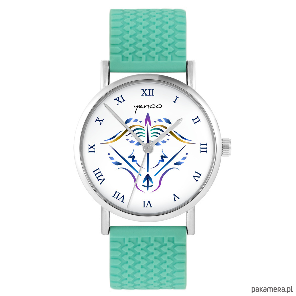 Pasek wykonany jest z silikonu z oryginalnym wytłoczonym wzorem, zapinanie na regulowaną klamrę.