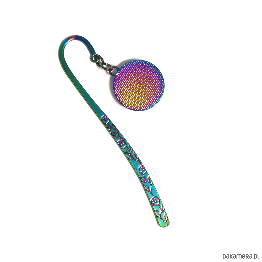 Zakładka wykonana jest z metalu, mieniąca się w odcieniach granatu, zieleni, turkusu, złota oraz fioletu i amarantu.