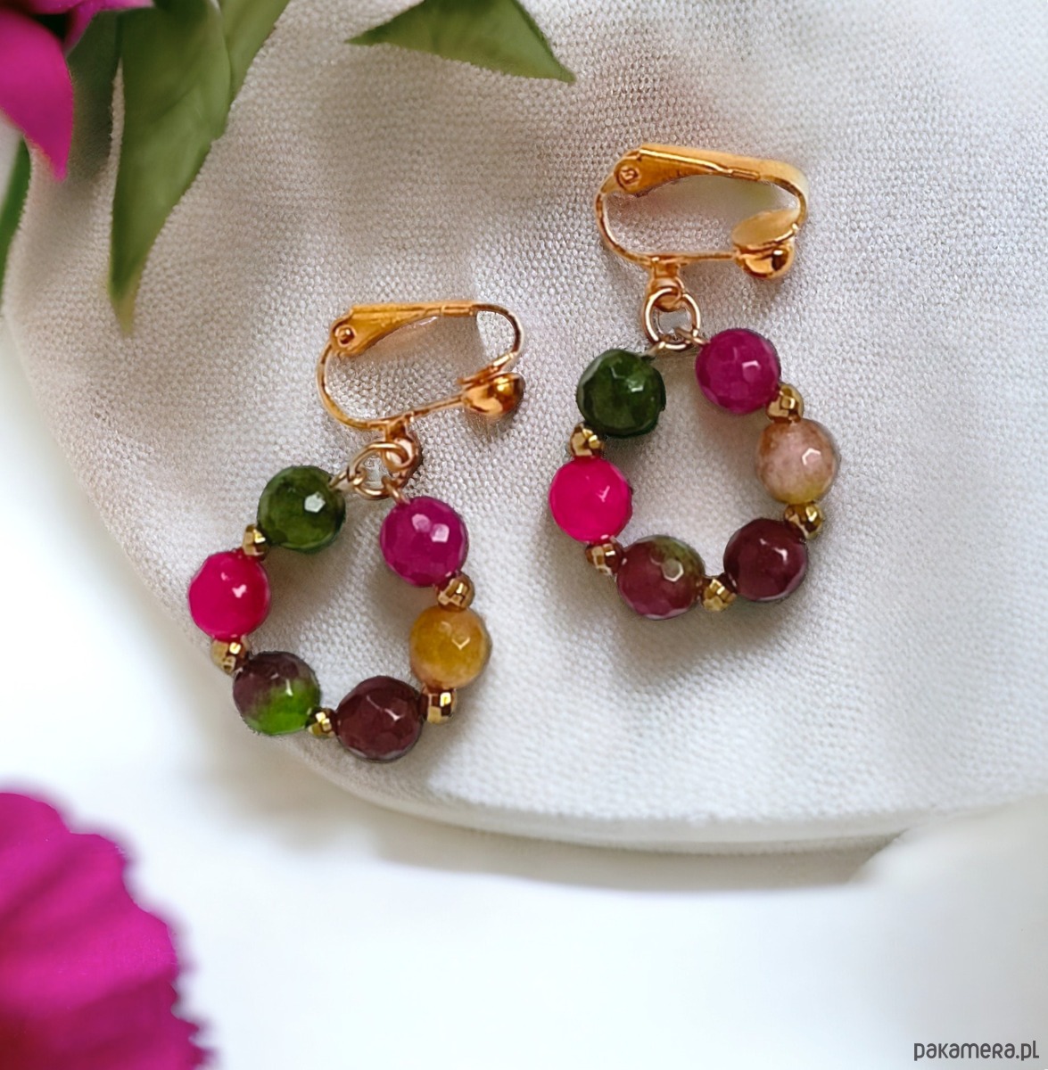 Urocze, bardzo efektowne klipsy wykonane z fasetowanego jadeitu 6mm i złotego hematytu 3mm.