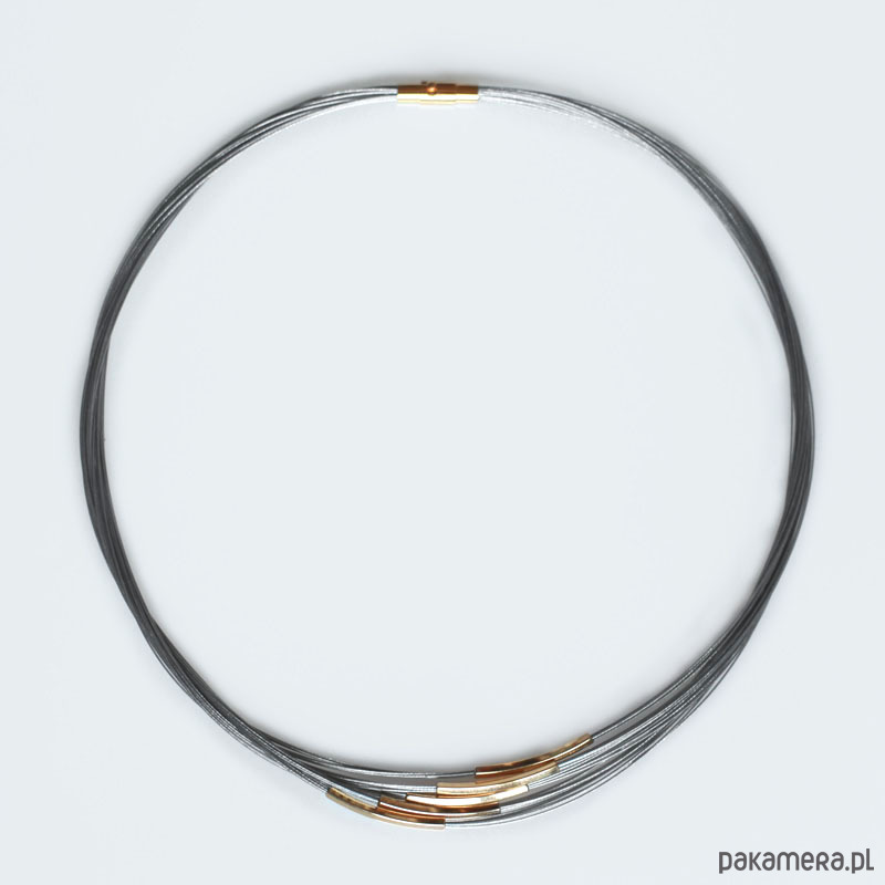 Kolia wykonana ze stalowej linki jubilerskiej pokrytej nylonem.