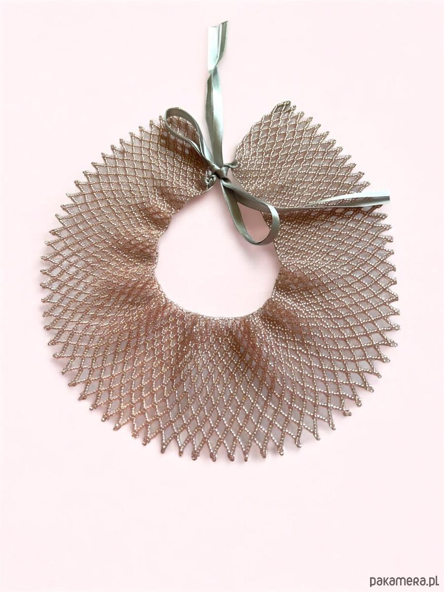 Kolia koralikowa matowy srebrnoróżowy kołnierzyk z koralików, rękodzieło