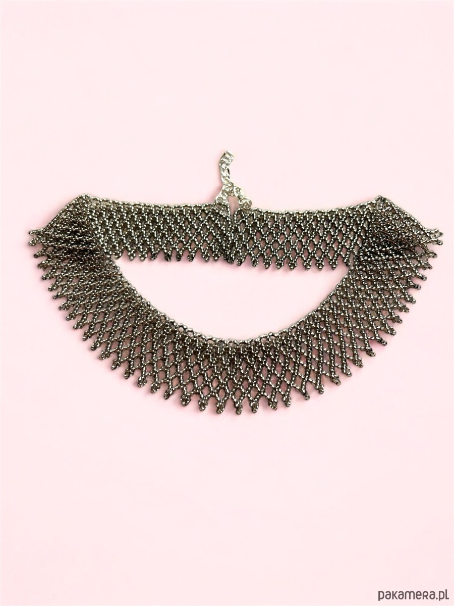 Kolia koralikowa w kolorze ciemnego srebra naszyjnik z koralików rękodzieło