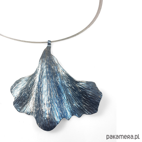 Liść z tytanu ,anodowany i repusowany.Naszkicowany i w całości wycięty , ukształtowany ręcznie .