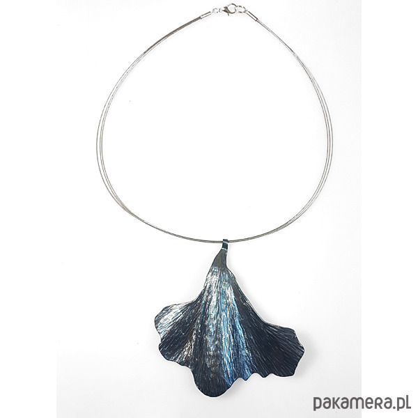 Liść z tytanu ,anodowany i repusowany.Naszkicowany i w całości wycięty , ukształtowany ręcznie .