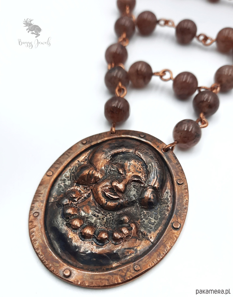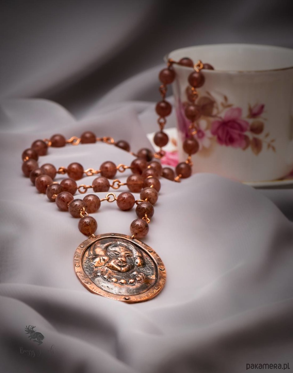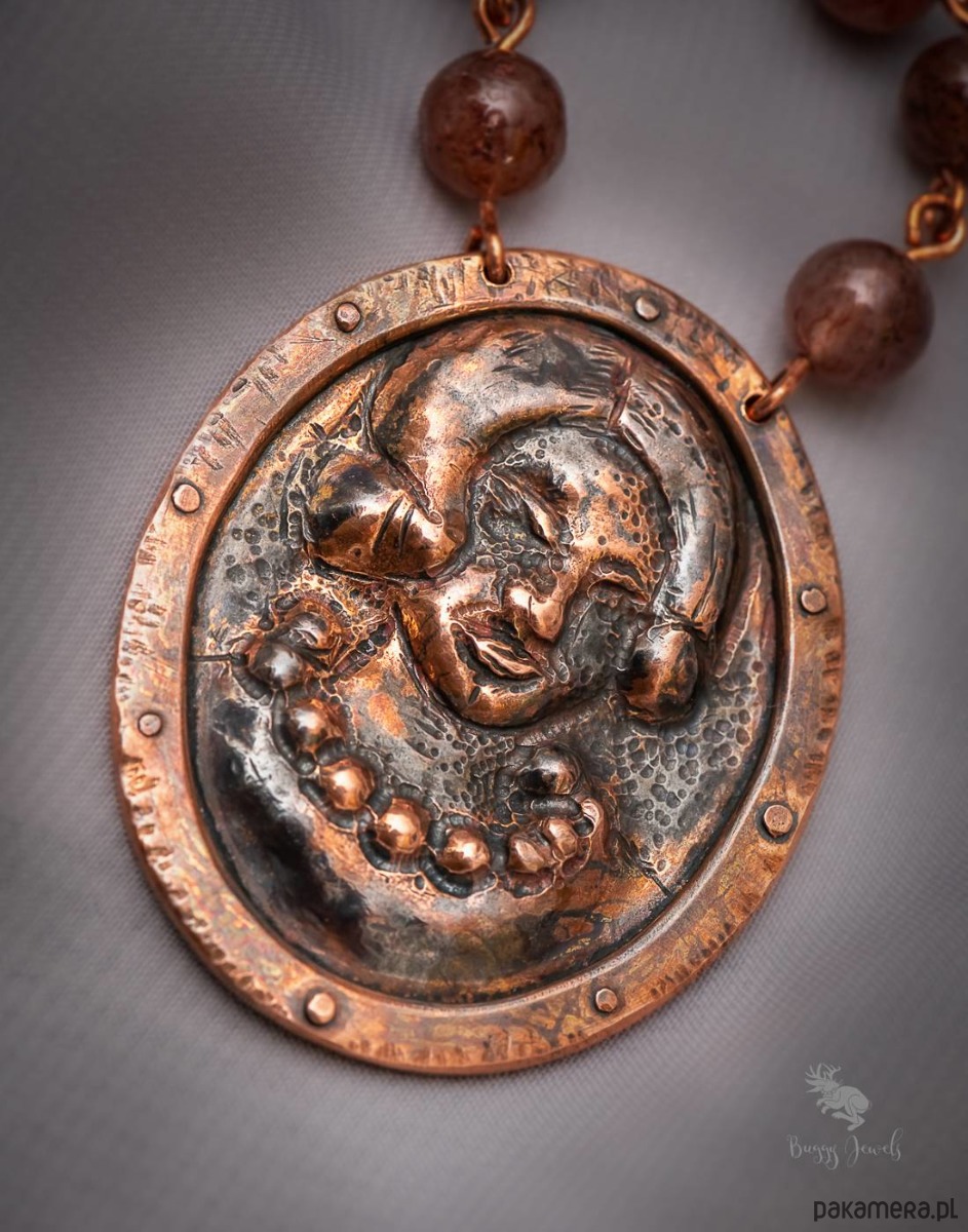 Zjawiskowy naszyjnik wykonany w całości ręcznie metodą repusowania na zimno.