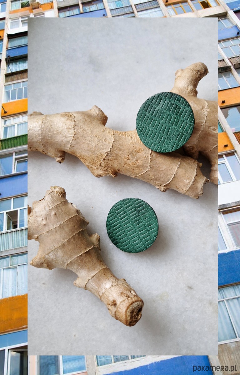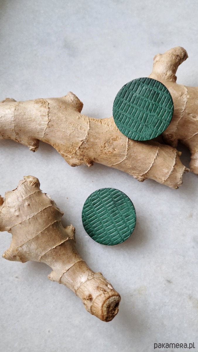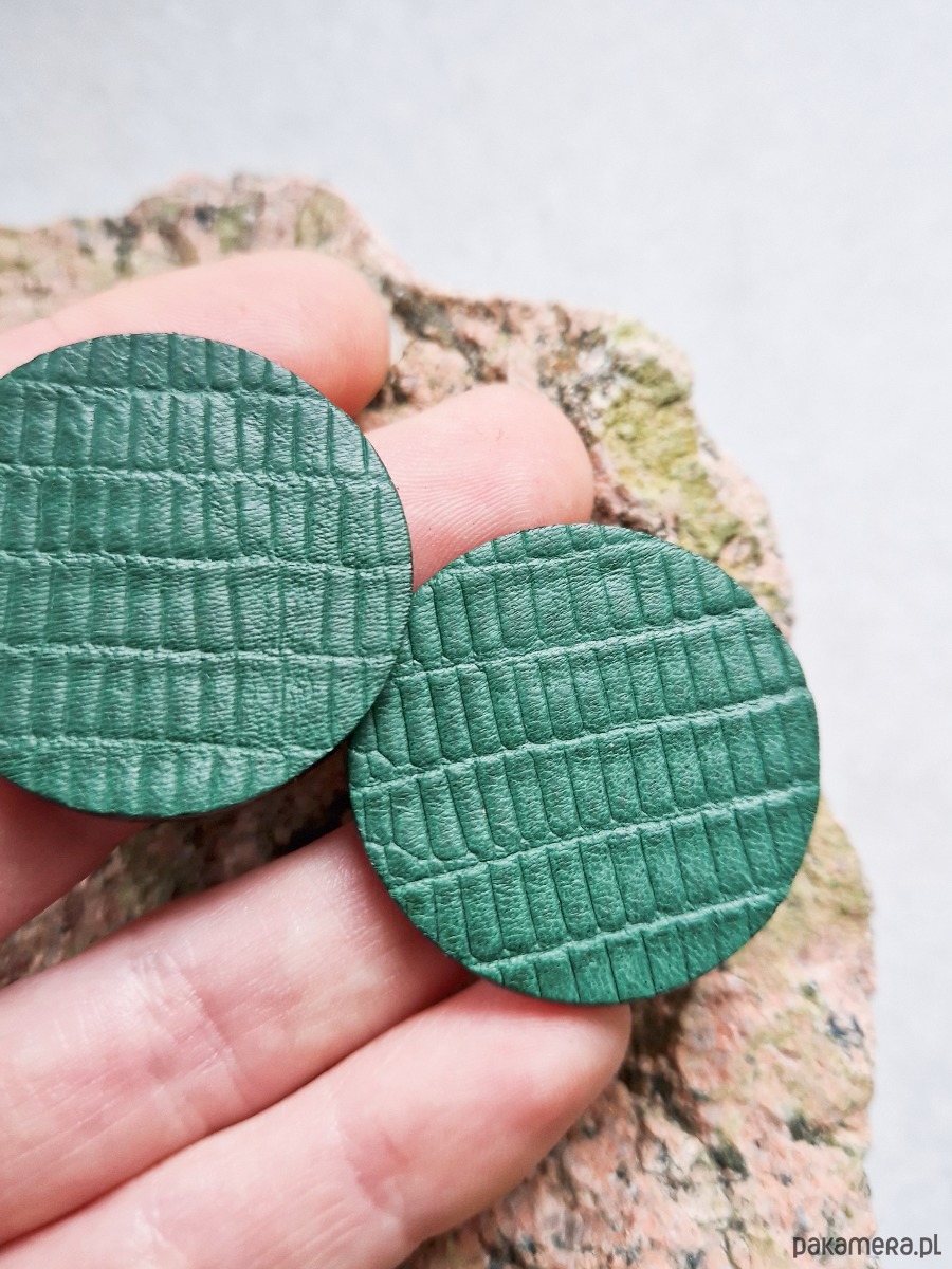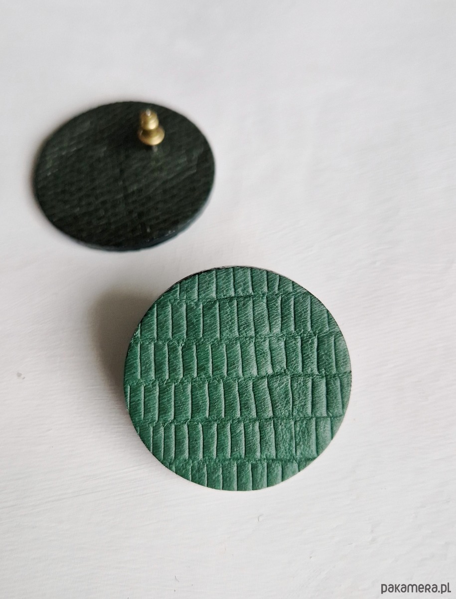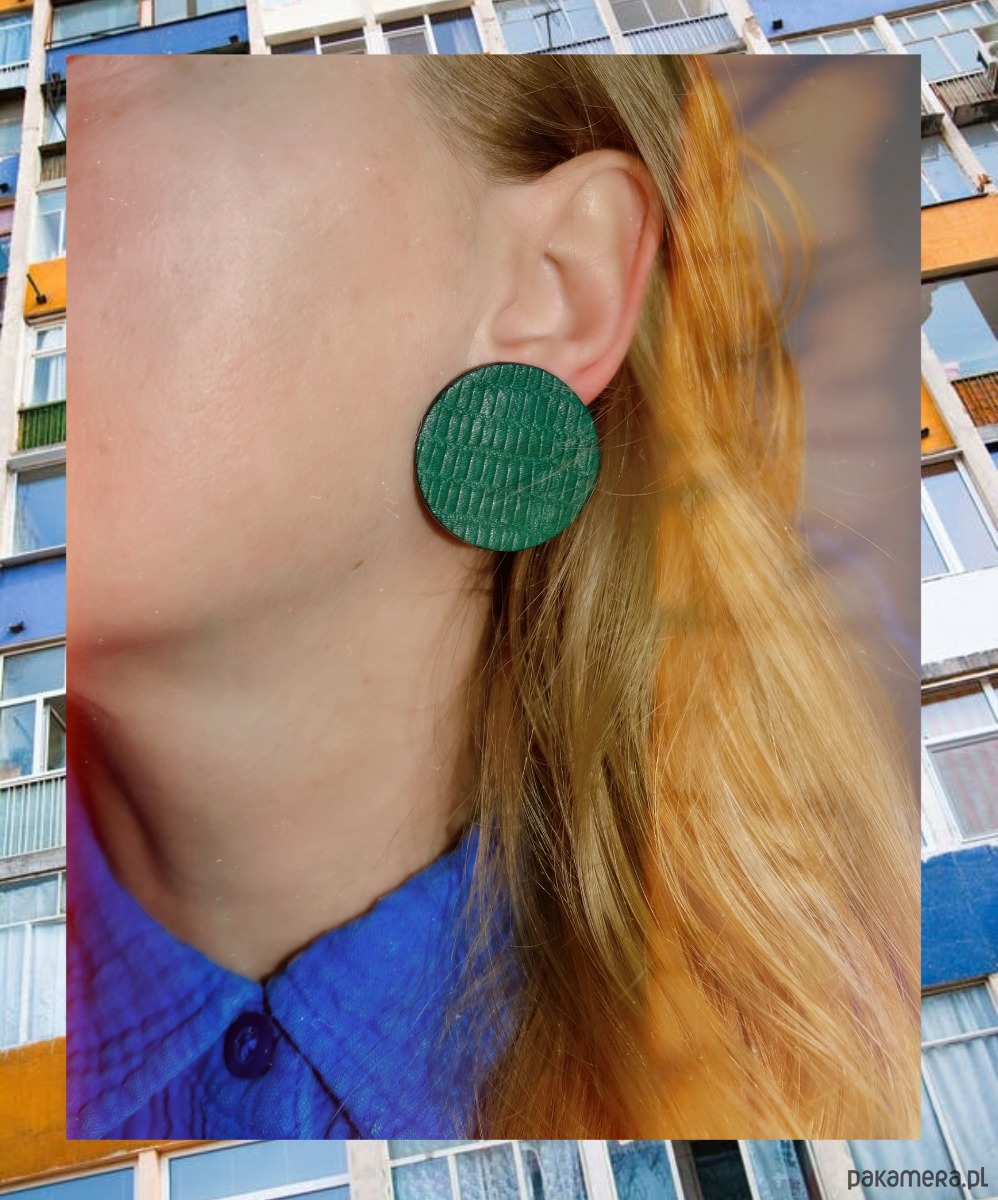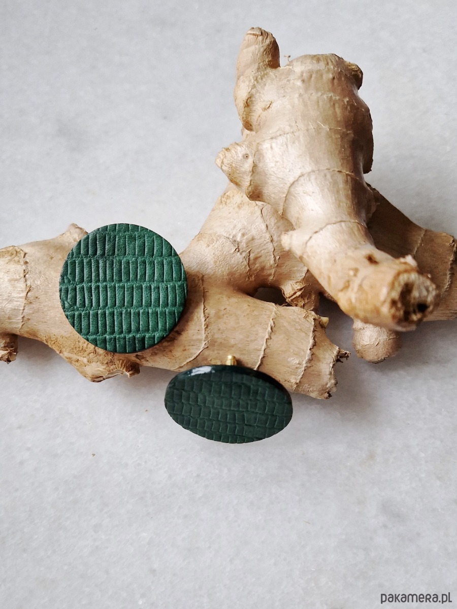 Leciutkie geometryczne kolczyki wykonane ze skóry naturalnej.