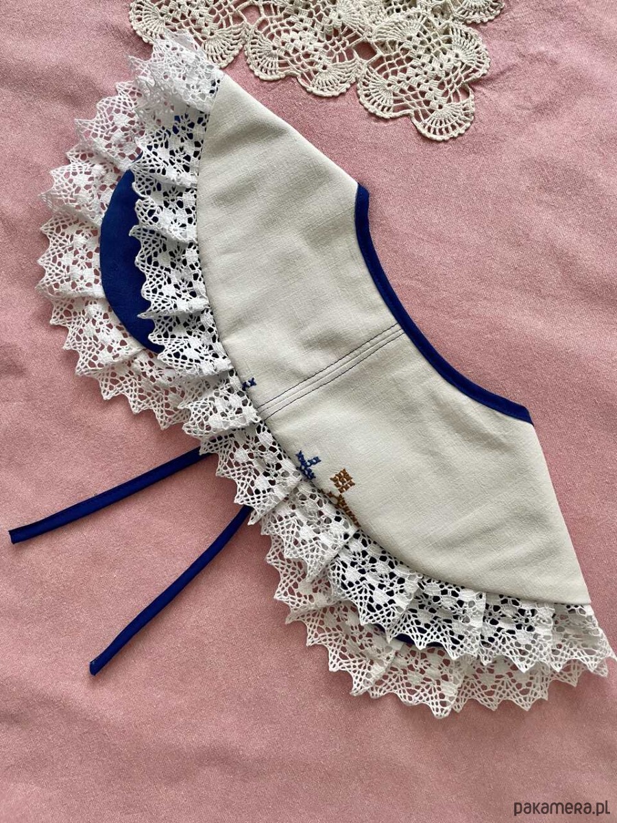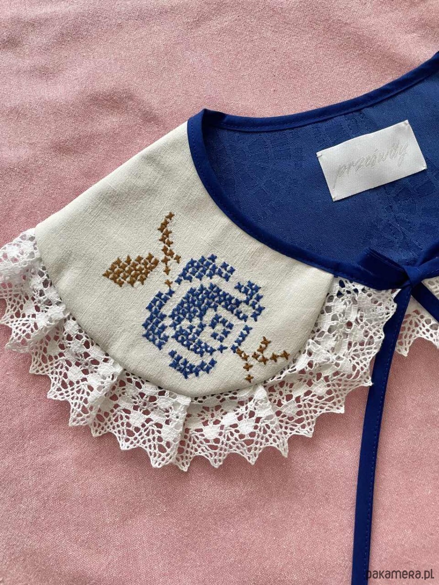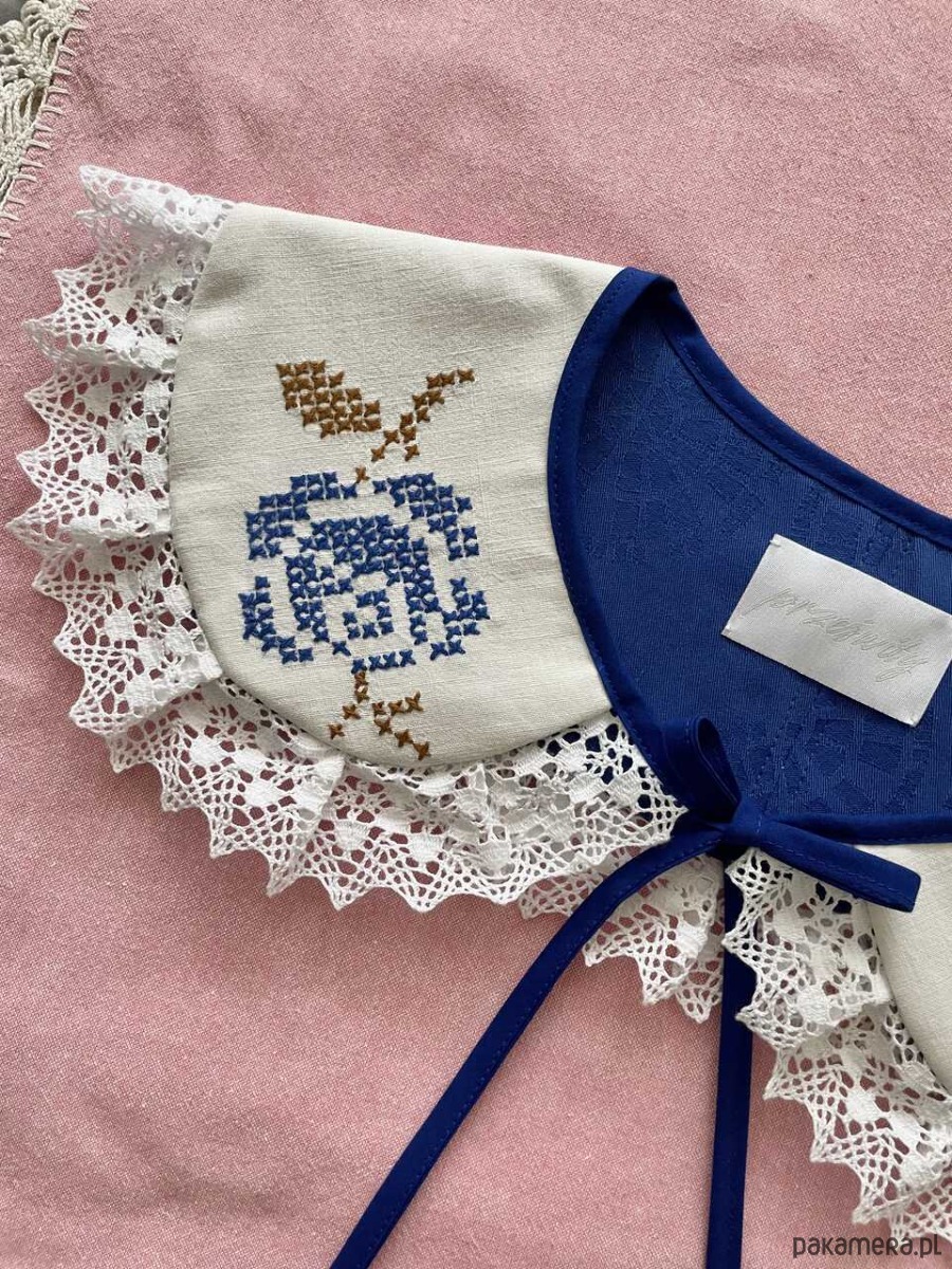 Każdy kołnierzyk powstaje z tkanin z drugiego obiegu, dlatego mogą pojawić się na nich niewielkie ślady użytkowania. Zawsze staramy się je odczarować: haftem, kompozycją, detalem. Prosimy o wyrozumiałość, to naturalna część pracy z materiałami, które już miały swoje życie.