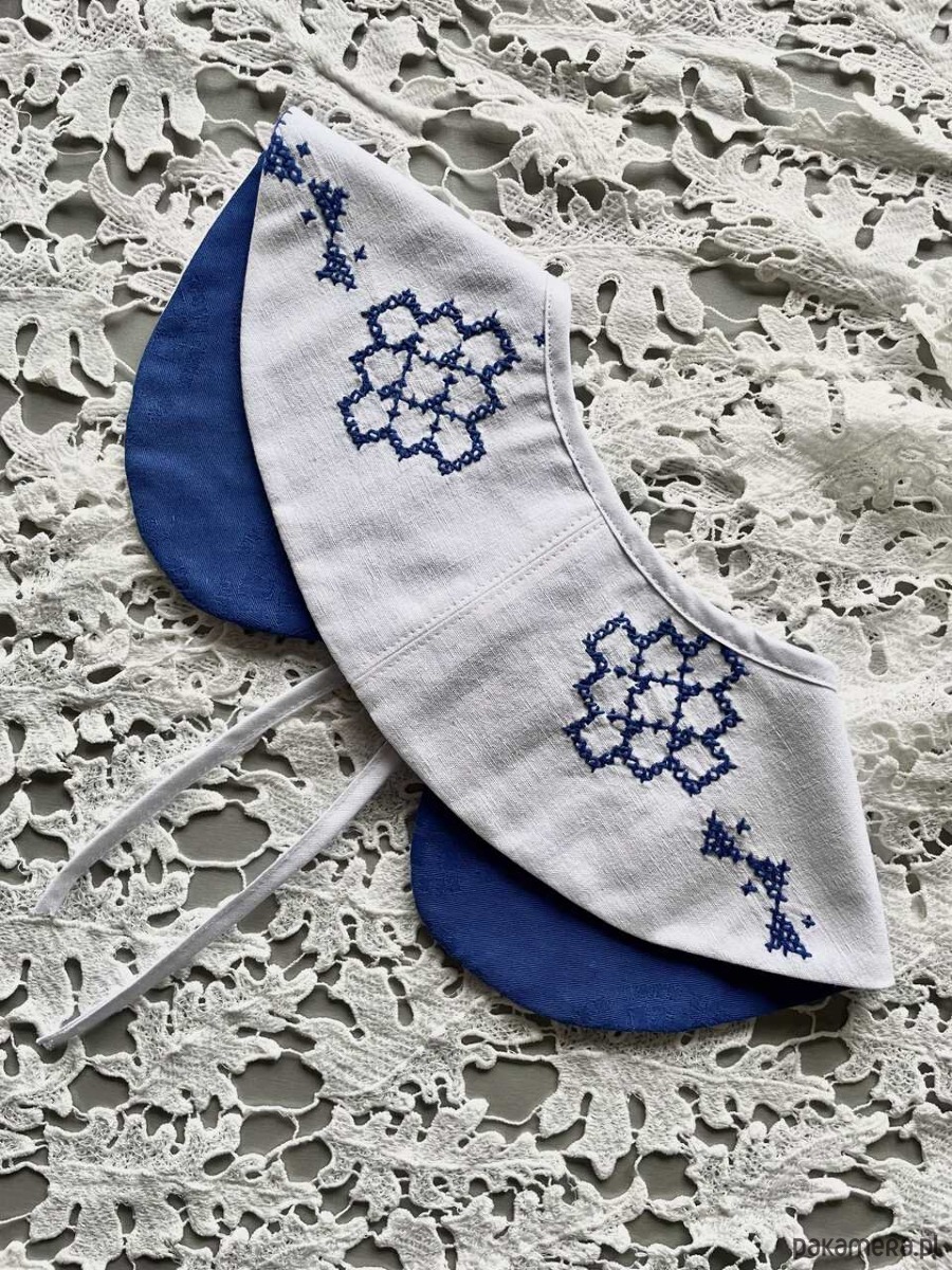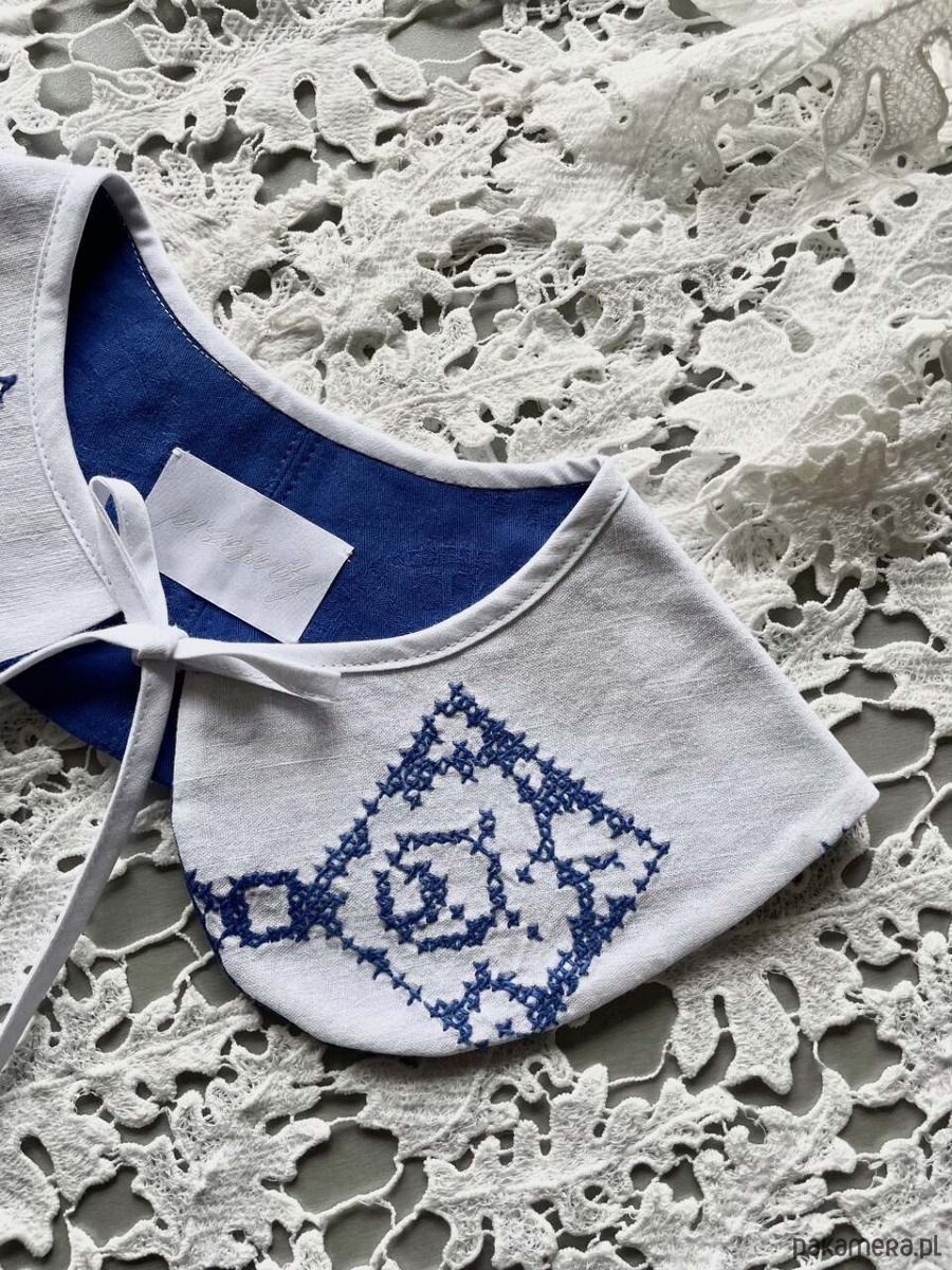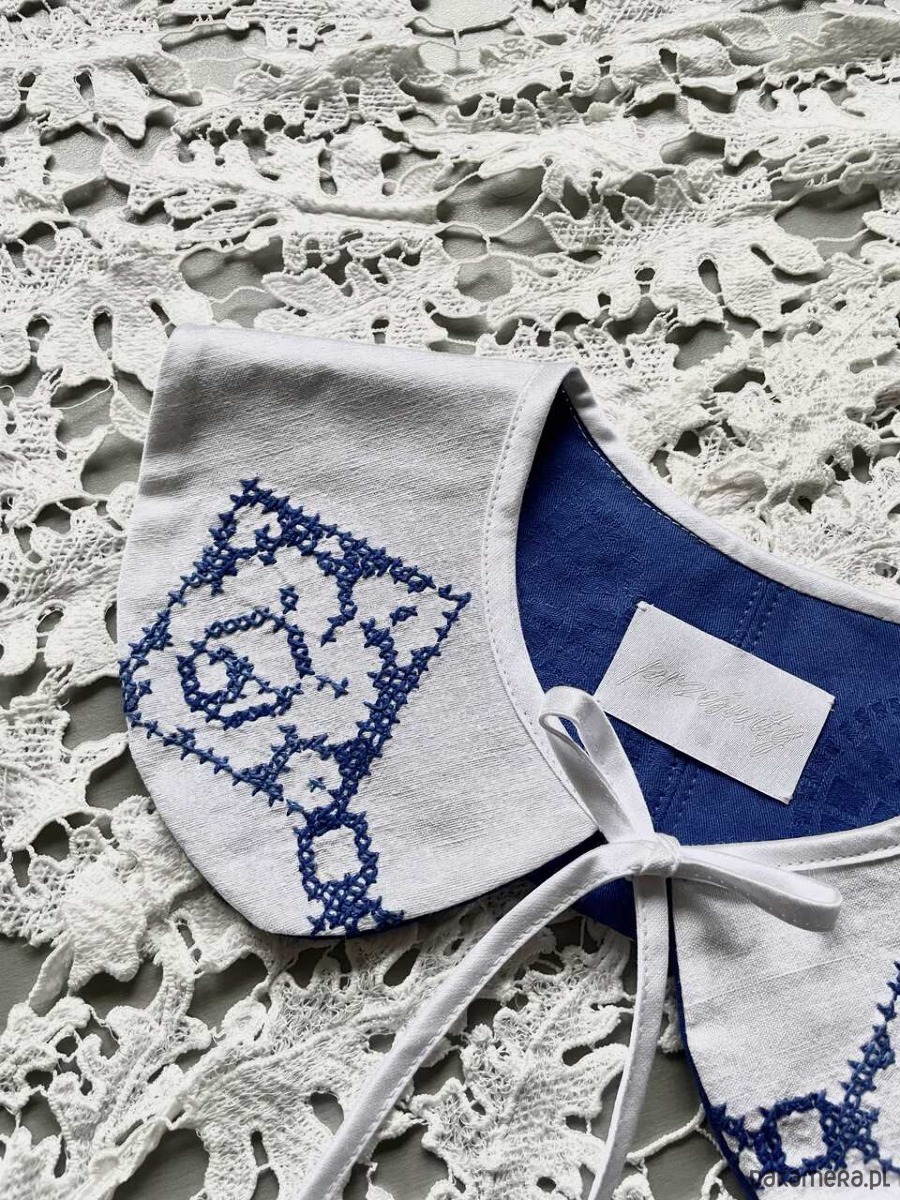 Każdy kołnierzyk powstaje z tkanin z drugiego obiegu, dlatego mogą pojawić się na nich niewielkie ślady użytkowania. Zawsze staramy się je odczarować: haftem, kompozycją, detalem. Prosimy o wyrozumiałość, to naturalna część pracy z materiałami, które już miały swoje życie.