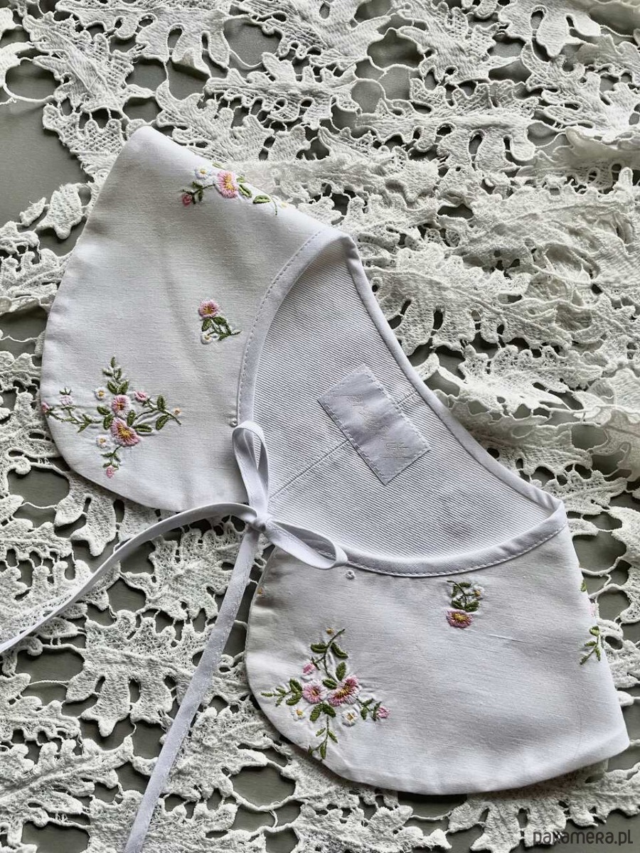 Kołnierzyk uszyty ręcznie z bawełnianego obrusa z drugiego obiegu.