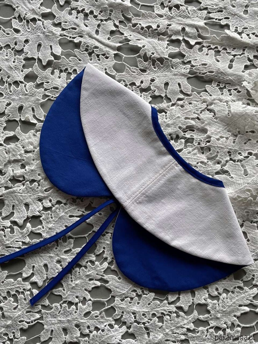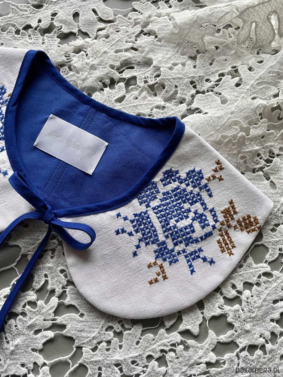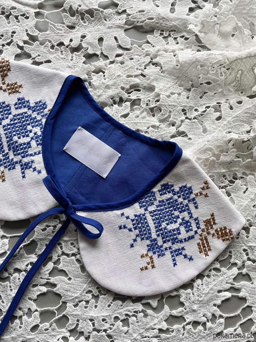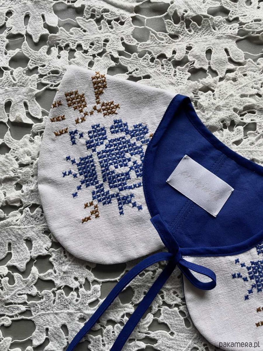 Każdy kołnierzyk powstaje z tkanin z drugiego obiegu, dlatego mogą pojawić się na nich niewielkie ślady użytkowania. Zawsze staramy się je odczarować: haftem, kompozycją, detalem. Prosimy o wyrozumiałość, to naturalna część pracy z materiałami, które już miały swoje życie.