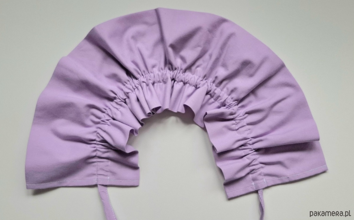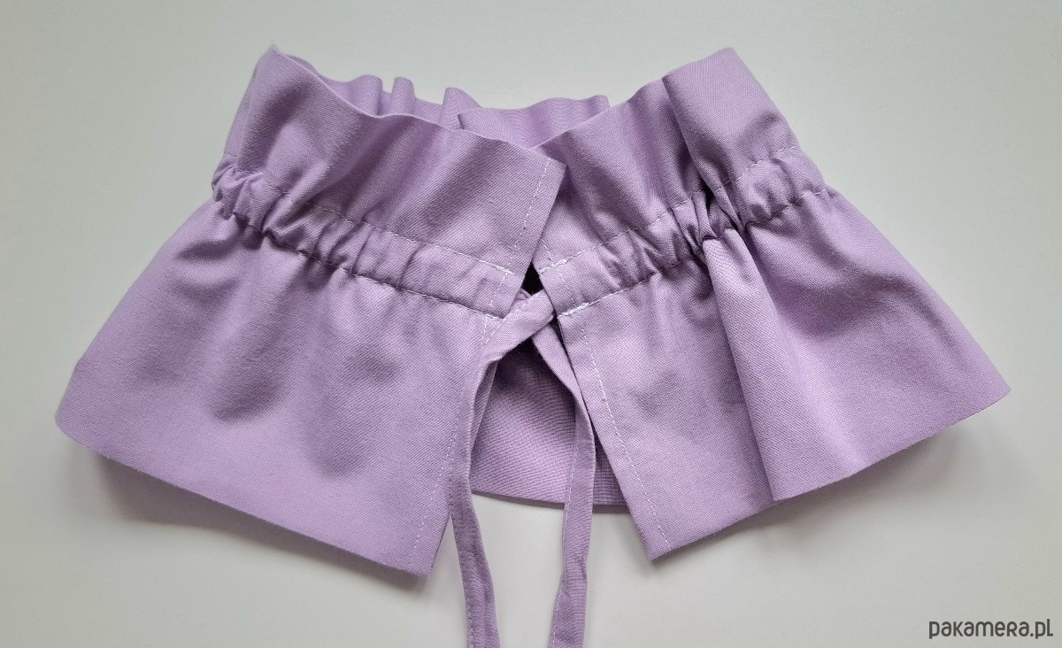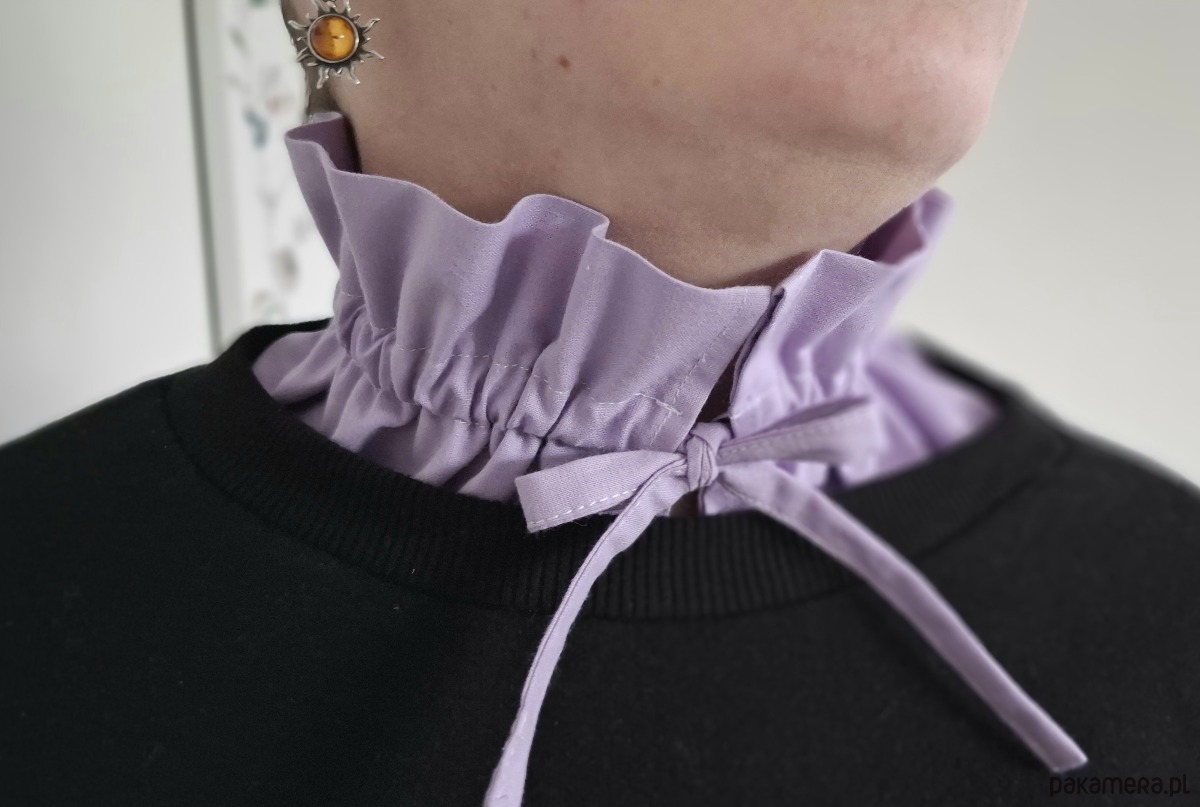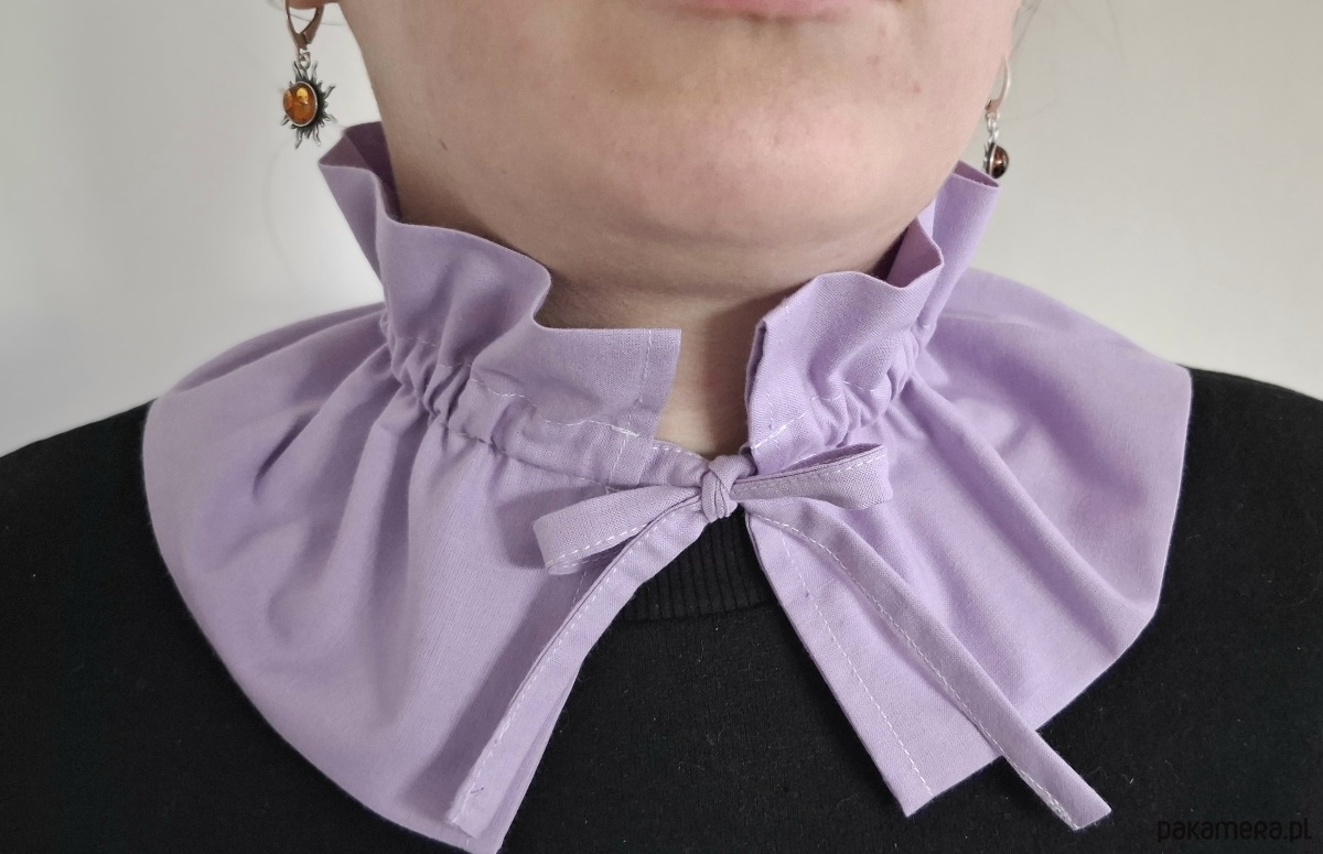 Kołnierzyk uszyty z tkaniny bawełnianej doda charakteru Twojej stylizacji. Do bluzy, sukienki czy sweterka. Marszczenie i wiązanie ułatwią dopasowanie.