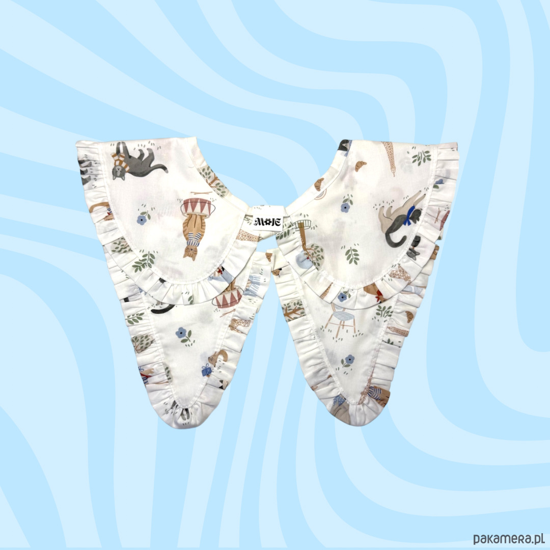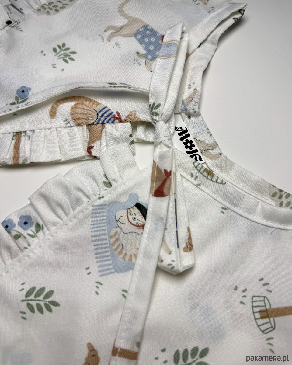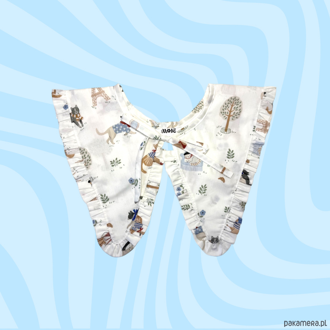 Wiązany kołnierzyk wykonany z tkaniny bawełnianej drukowanej w urocze kotki.