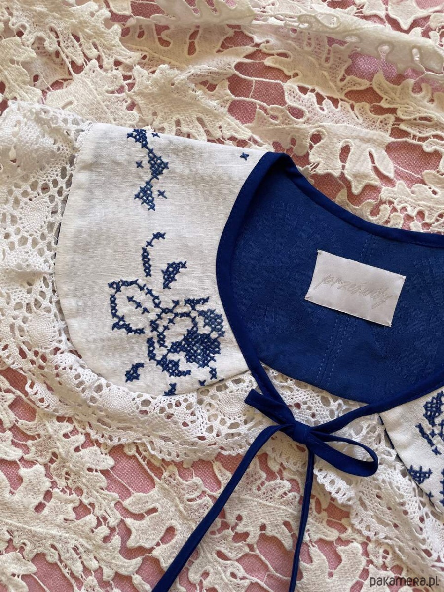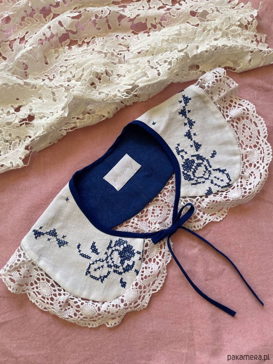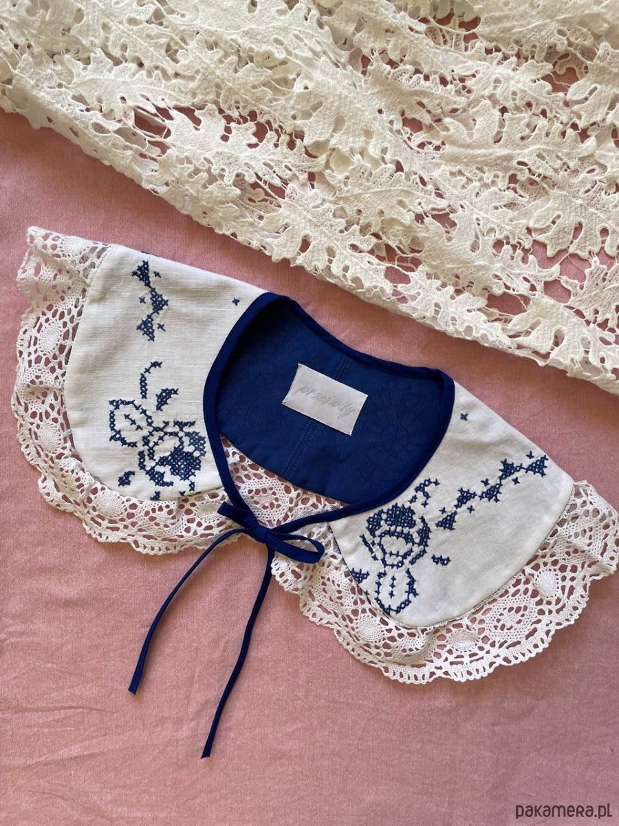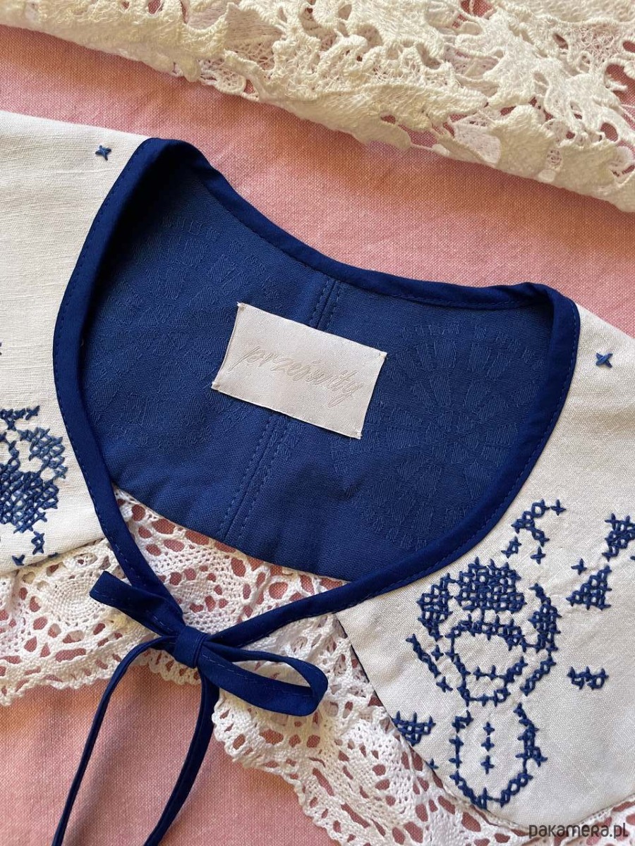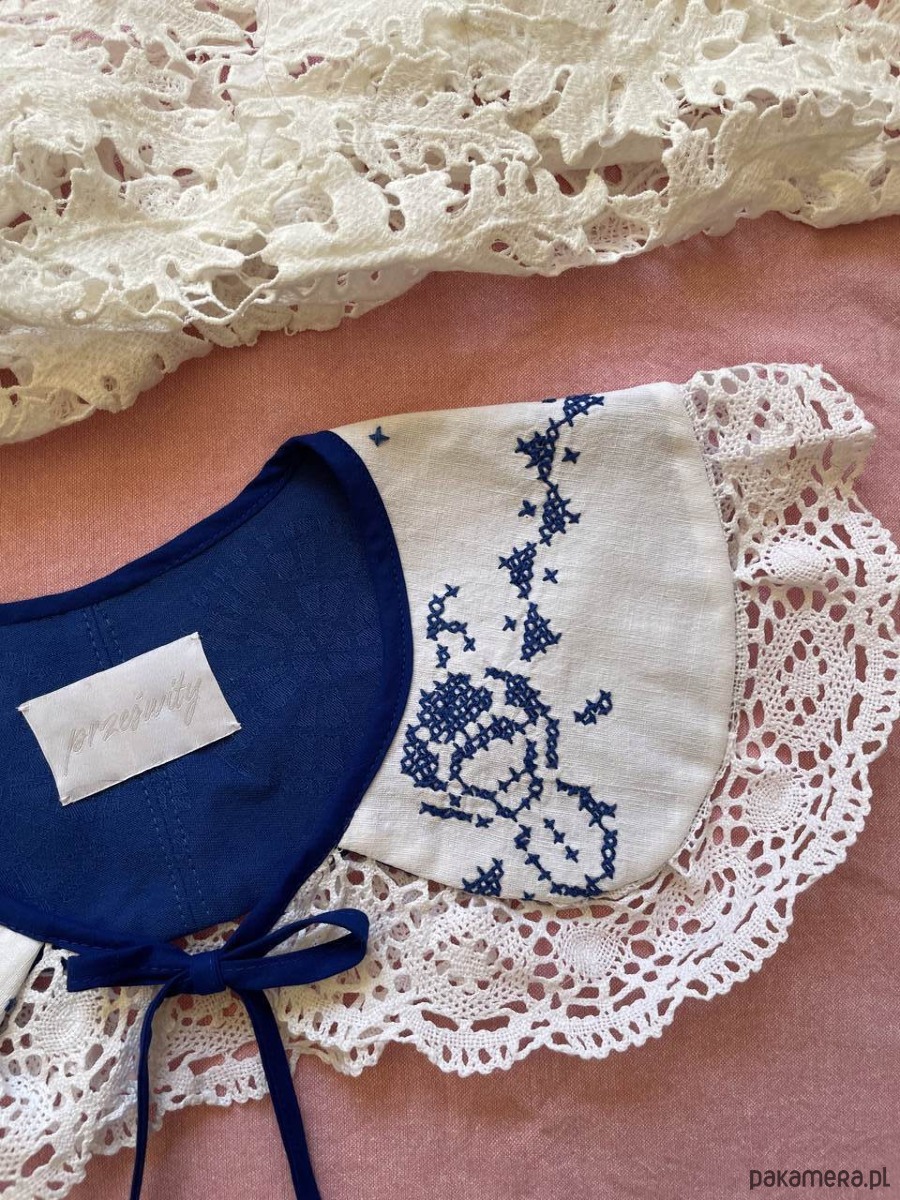 Wszystkie rzeczy w Prześwitach są unikatowe - każdy egzemplarz powstaje tylko raz. Każdy kołnierzyk powstaje z tkanin z drugiego obiegu, dlatego mogą pojawić się na nich niewielkie ślady użytkowania. Zawsze staramy się je odczarować: haftem, kompozycją, detalem. Prosimy o wyrozumiałość, to naturalna część pracy z materiałami, które już miały swoje życie.