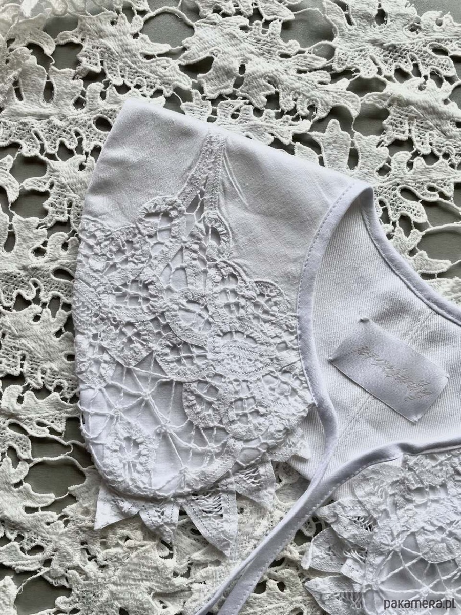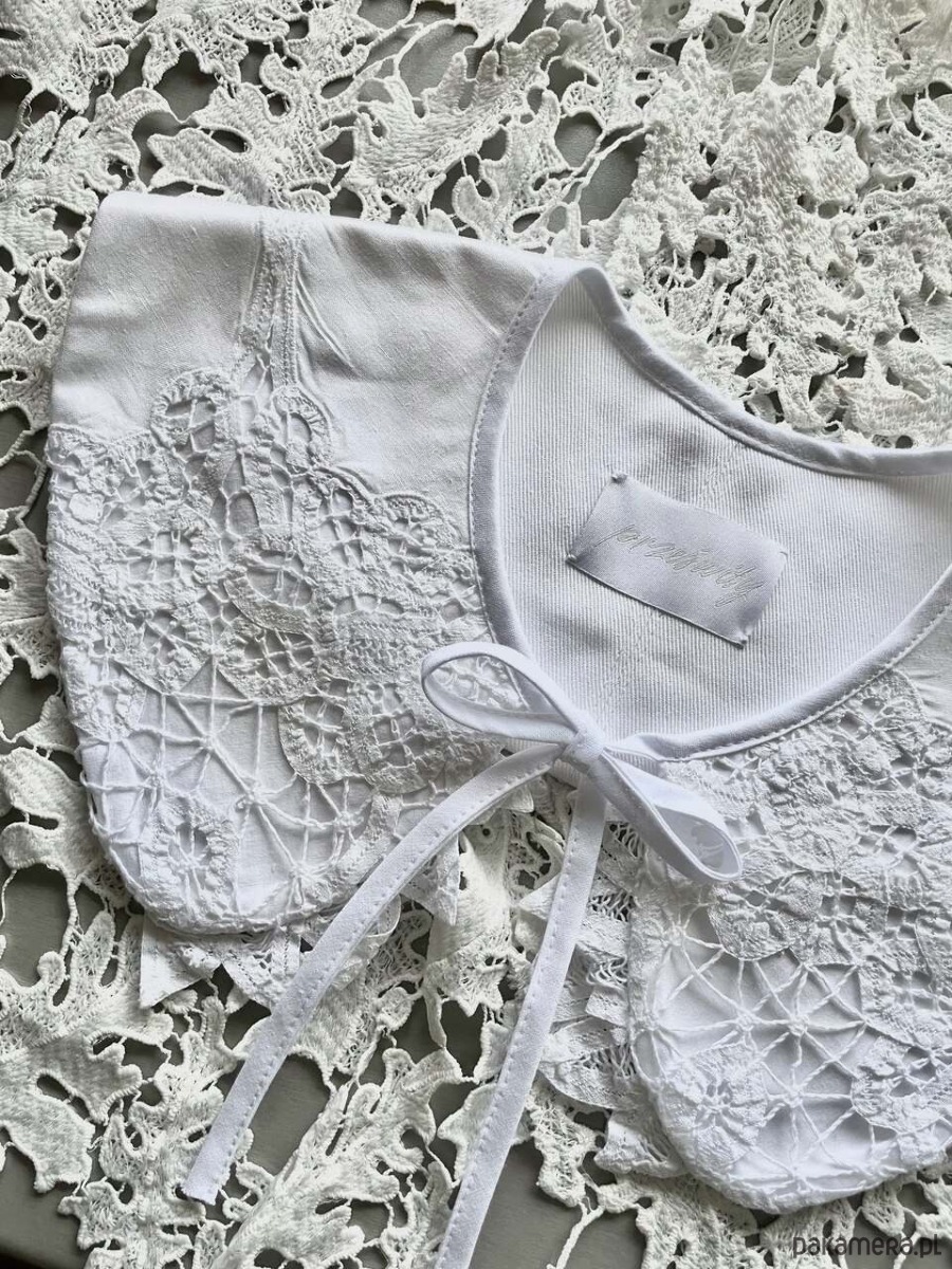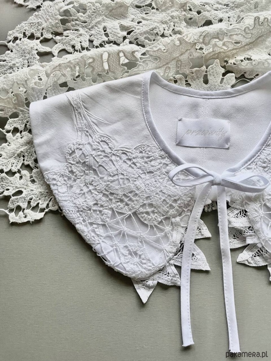 Kołnierzyk uszyty ręcznie z bawełnianego obrusa z drugiego obiegu.