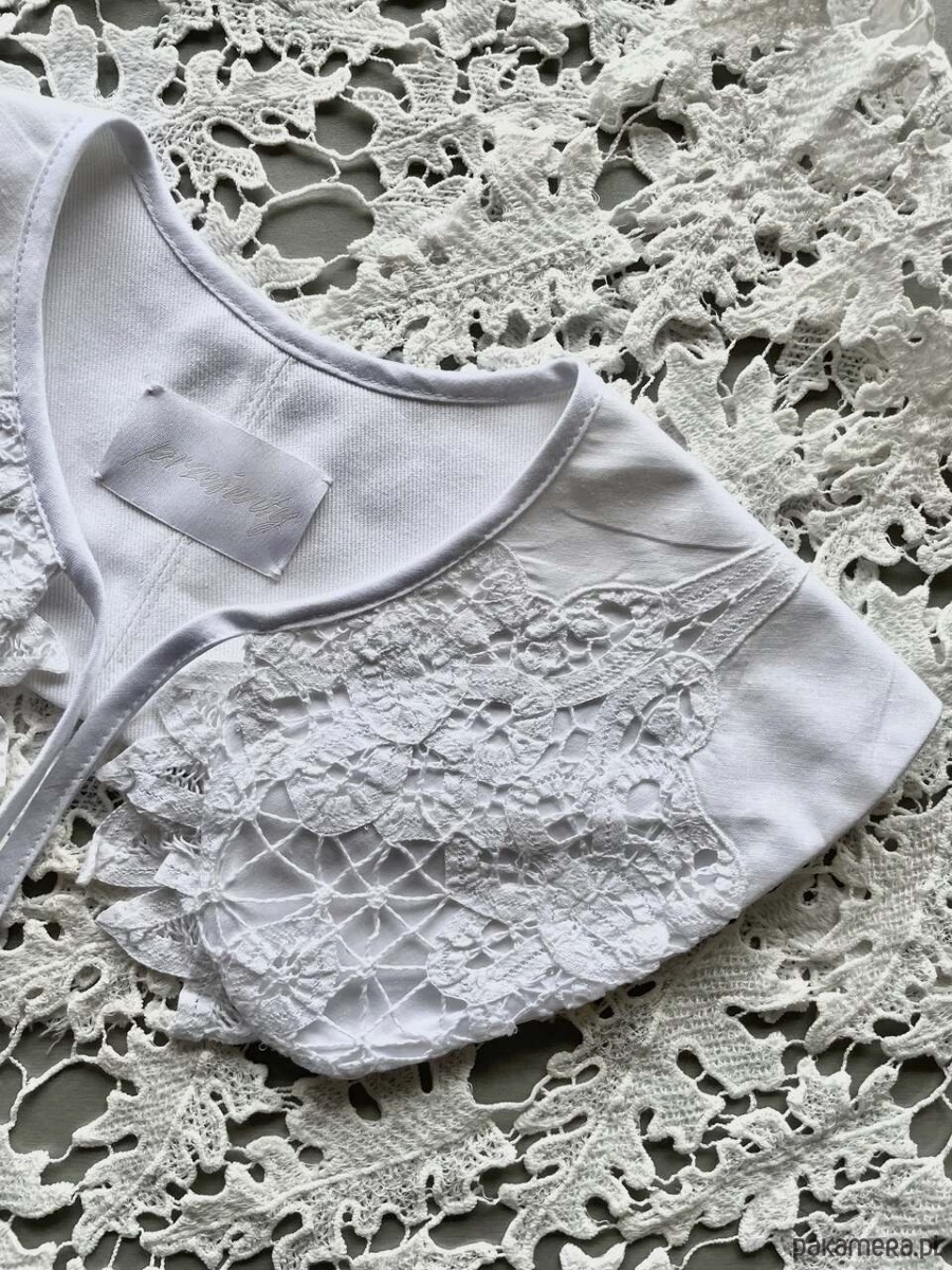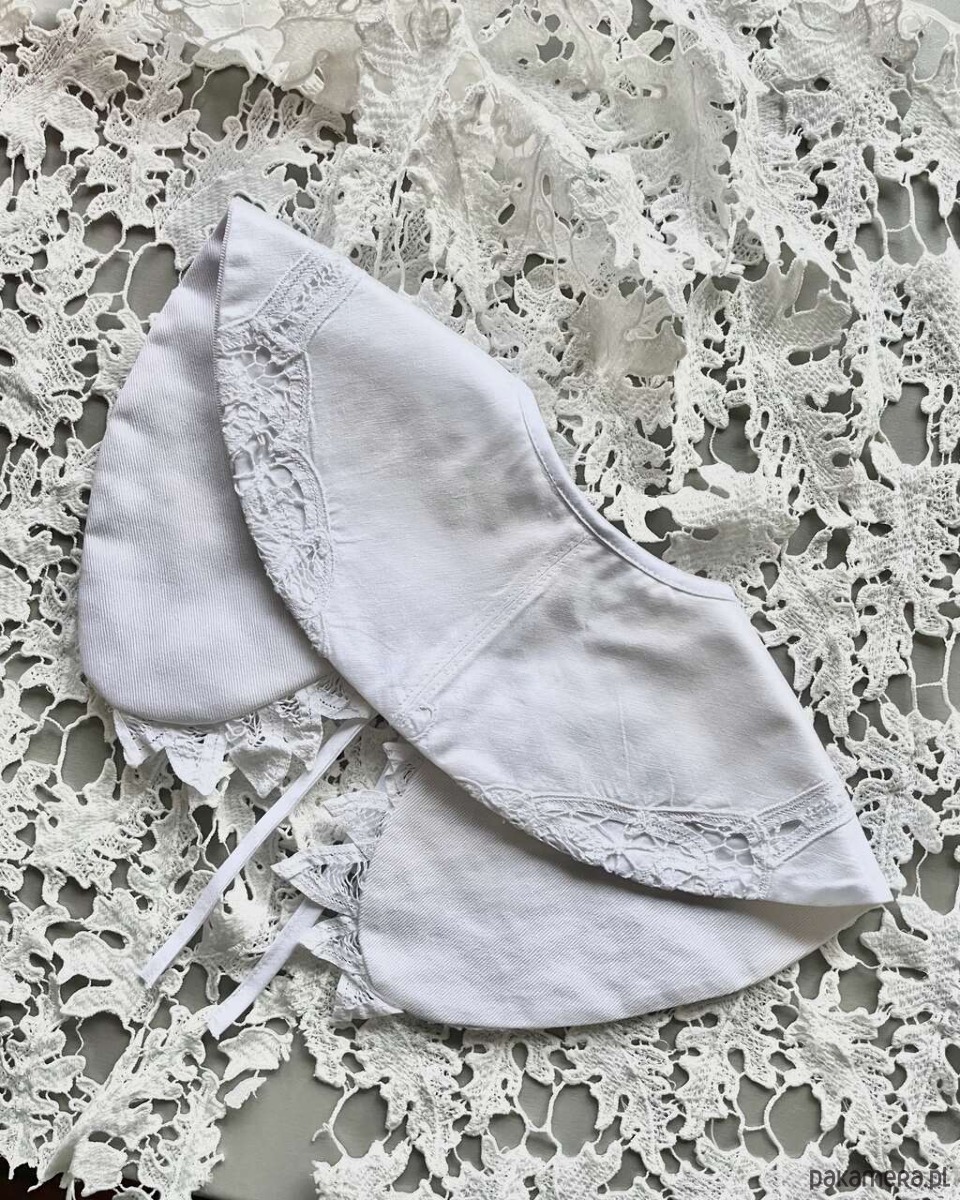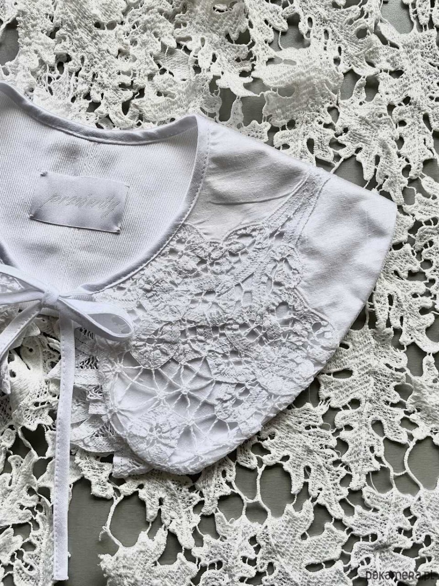 Kołnierzyk uszyty ręcznie z bawełnianego obrusa z drugiego obiegu.