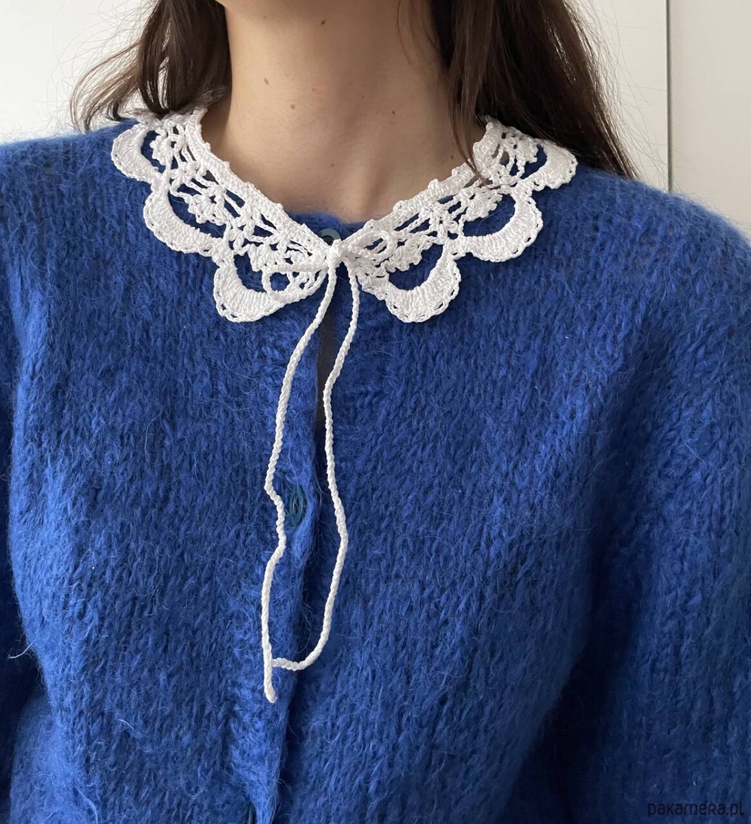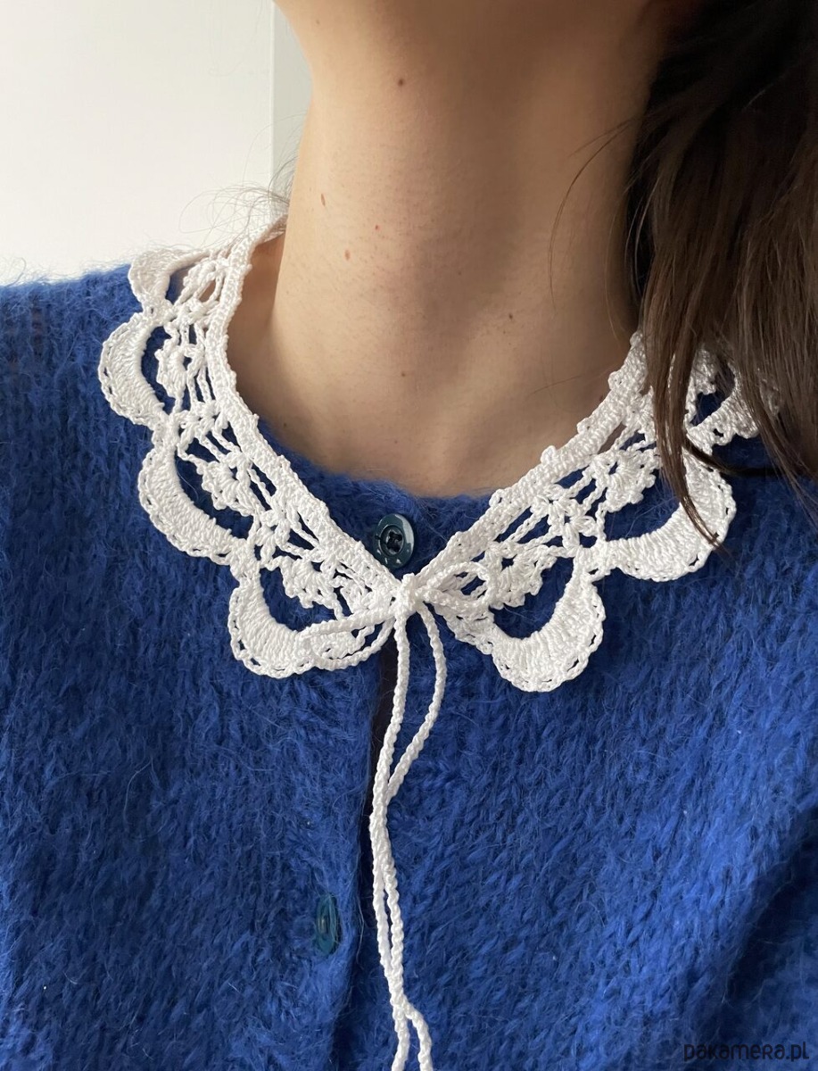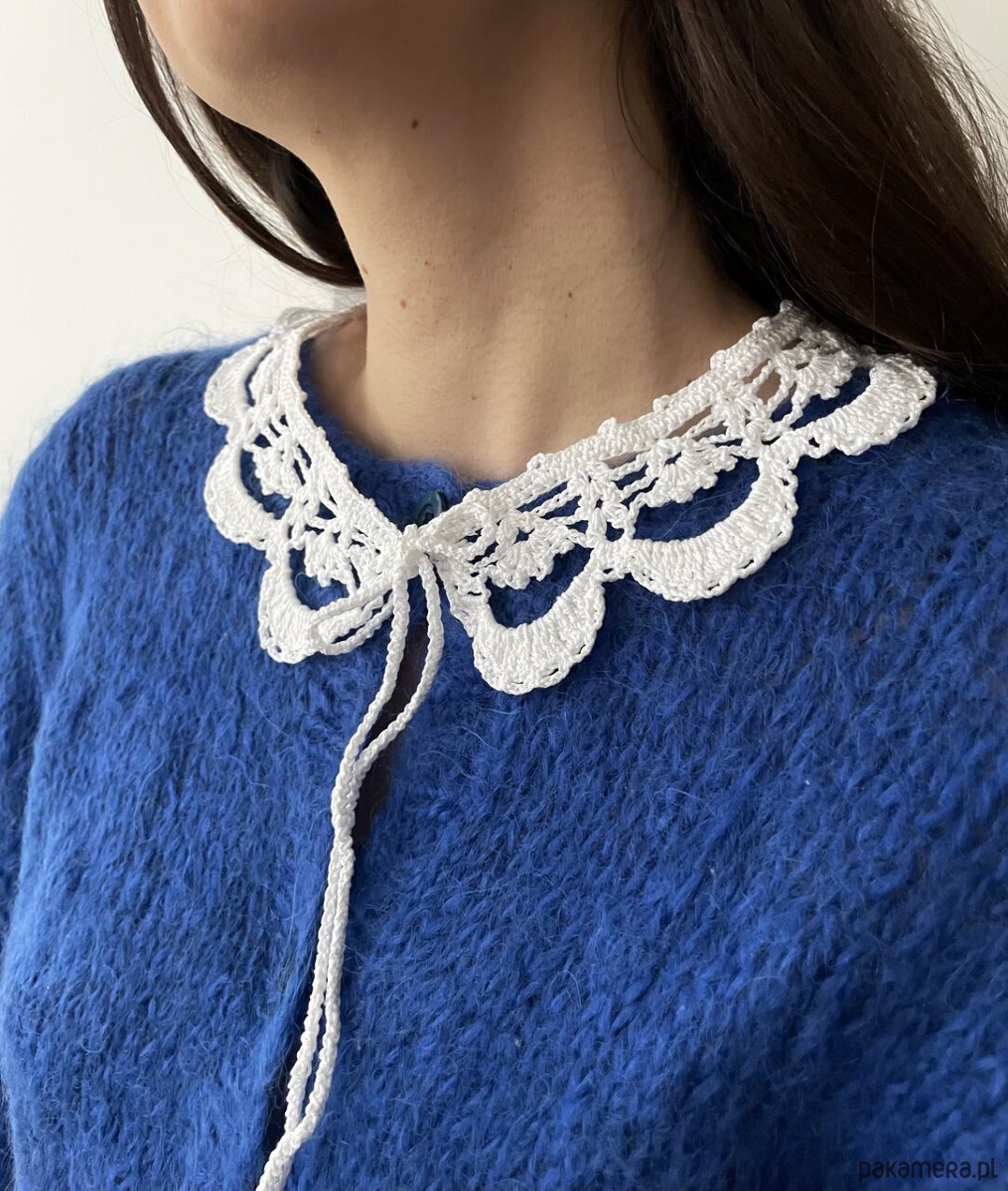 Szydełkowy kołnierzyk wykonany z polskiego bawełnianego kordonka najwyższej jakości.