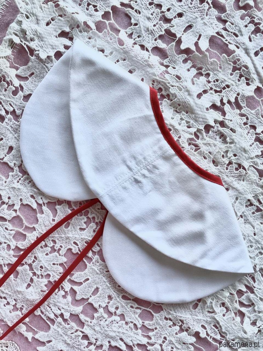 Każdy kołnierzyk powstaje z tkanin z drugiego obiegu, dlatego mogą pojawić się na nich niewielkie ślady użytkowania. Zawsze staramy się je odczarować: haftem, kompozycją, detalem. Prosimy o wyrozumiałość, to naturalna część pracy z materiałami, które już miały swoje życie.